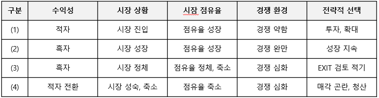 매출은 유지되고 있고, 손익계산서상으로는 당장 큰 문제가 없어 보인다. 그래서 대부분의 회사는 철수를 적자 이후의 문제로 미룬다.