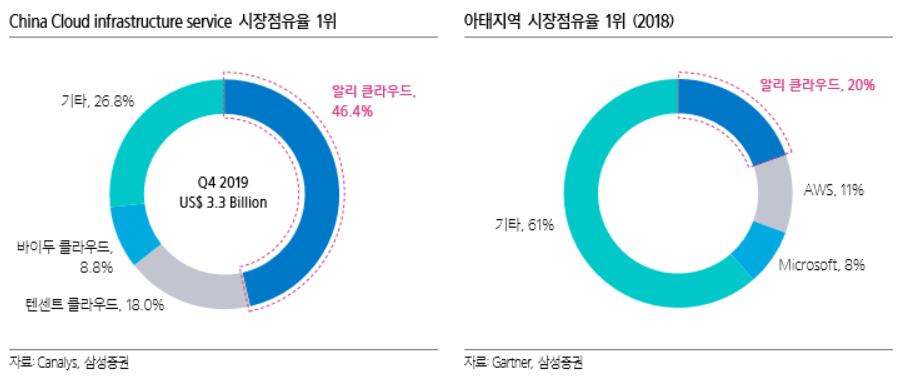 글로벌 클라우드 시장은 아마존, 마이크로소프트, 구글의 3강 체제로 굳혀지고 있지만 중국 시장은 중국 산업보호 정책으로 외국 기업의 진출이 어렵다. (JV로만 가능하다) 글로벌 플레이어 없는 중국 거대 시장은 다시 BAT의 놀이터가 되고 있다. 현재 중국의 클라우딩 서비스 시장의 1인자는 알리 클라우드이고 텐센트, 바이두가 그 뒤를 쫓고 있다. '정부의 보호 정책 → 중국 시장을 중국 기업이 장악 → 경쟁력 확보 → 해외 진출'의 전형적인 '중국 특색 발전 모델'이 만들어 지고 있다.