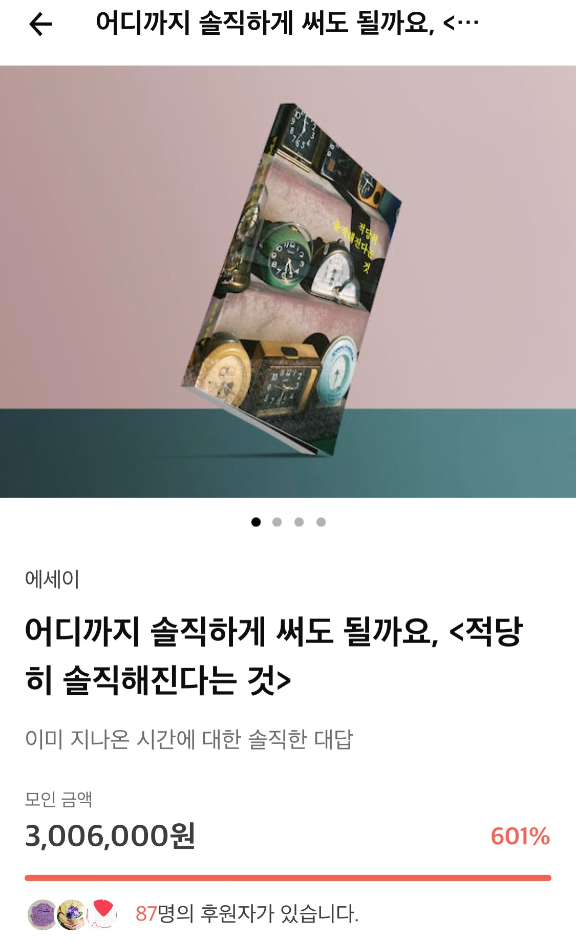 엊그제 오픈한 텀블벅 크라우드펀딩이 목표금액의 600%를 달성했습니다. 펀딩 기간이 9/14까지라 아직 한 달 넘게 남았는데요. 리워드의 퀄리티를 높일 수 있도록 열심히 발에 땀나게 뛰어다니려 합니다. 이미 후원해 주신 분들, 그리고 앞으로 해주실 분들께 감사의 마음 전합니다!