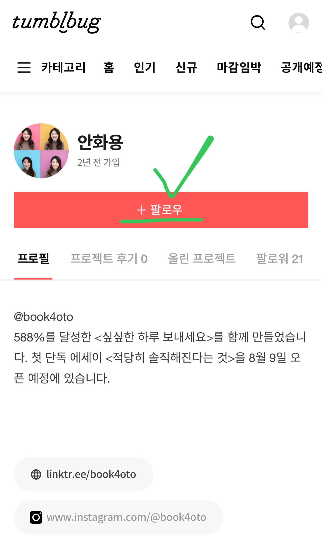텀블벅 작가 프로필 팔로우하고 소식받기!