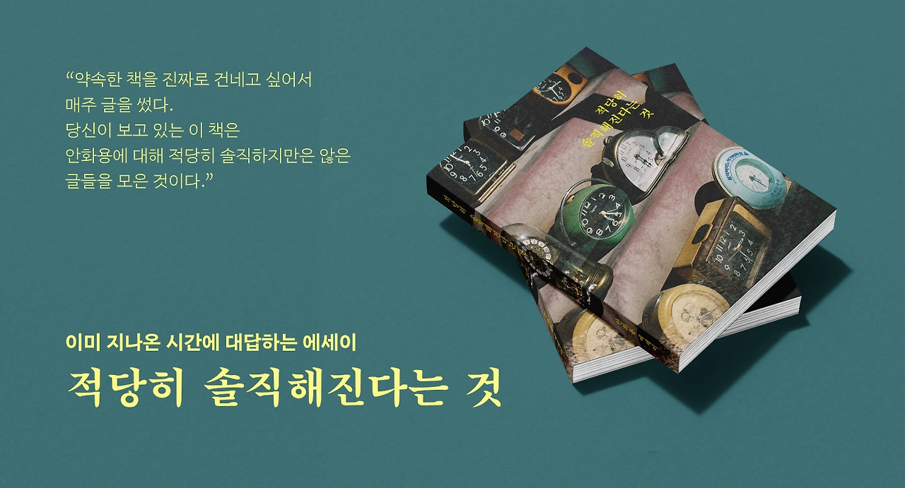 안녕하세요. <적당히 솔직해진다는 것>으로 첫 단독 에세이 출간을 앞두고 있는 작가 안화용입니다. 8월 9일에 펀딩이 오픈됩니다. 아래 링크에서 텀블벅 회원가입 및 로그인 후, 제 작가 프로필을 팔로우해 주시면 제 펀딩 소식을 받으실 수 있습니다.