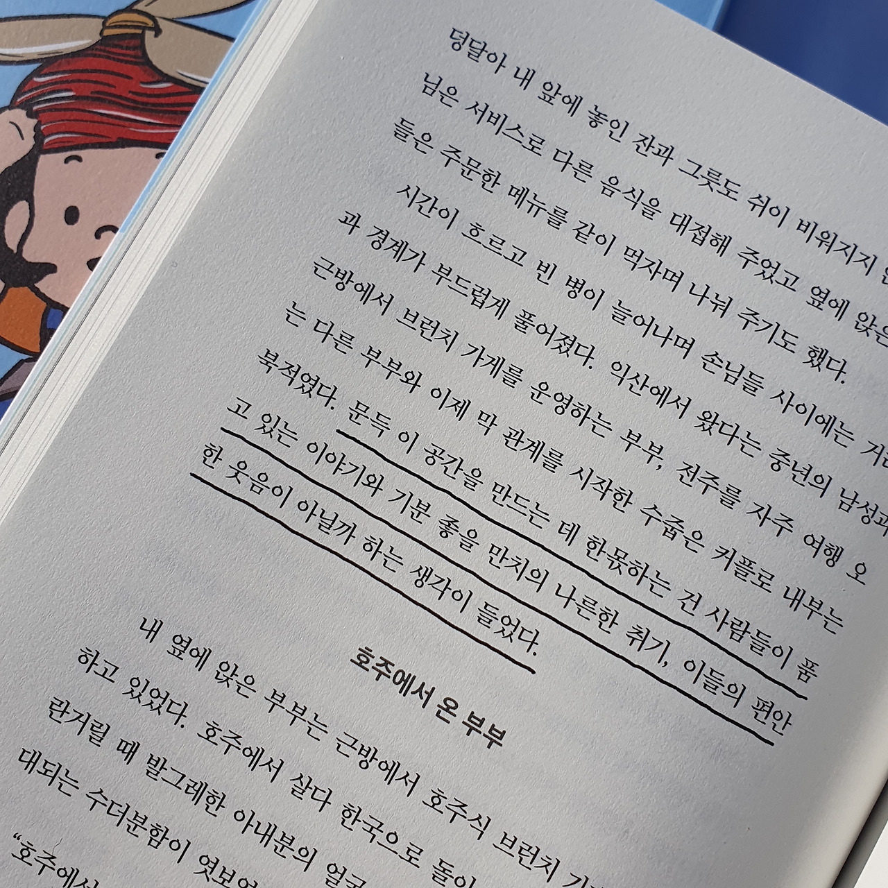 Q11. 감성적인 글을 쓰시는 만큼 책도 즐겨 읽으시는 듯합니다. 특히 독립서점에 관심을 많이 가지시는 것 같은데요. 여러 독립서점을 다니시며 제일 기억에 남는 곳은 어디였는지, 그곳 직원분과는 어떤 대화를 나누고 어떤 책을 구매하셨는지도 궁금합니다.