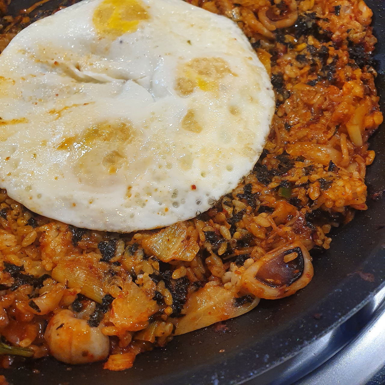 세 번째 '흑백집'의 매운 쭈꾸미. 쭈꾸미 철에 방문해서 그런지 아주 실한 쭈꾸미를 만날 수 있었다. 심지어 볶음밥 재료가 셀프바에 비치되어 있어 한 바가지 볶아 먹어도 눈치 보지 않아도 된다. 수년 전 닭갈비 집에서 아르바이트한 기억을 되살려 하트 볶음밥에 도전했지만, 양이 너무 많아서 사과 볶음밥이 돼버렸다. 비교적 저렴한 가격과 기본에 충실한 구성이 특징이며, 굳이 단점을 꼽자면 쭈꾸미를 찍어먹을 마요네즈가 안 나온다!(★★★★)