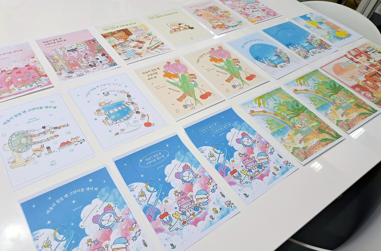 고된 마감을 마치고 7월 20일에 출간한 신작 일러스트 에세이. <마음이 힘들 땐 고양이를 세어 봐>를 문장으로 표현하자면 이런 말이 가장 적절할 거 같다. '귀여운 거 옆에 귀여운 거, 그 귀여운 거 옆에 더 귀여운 거.'