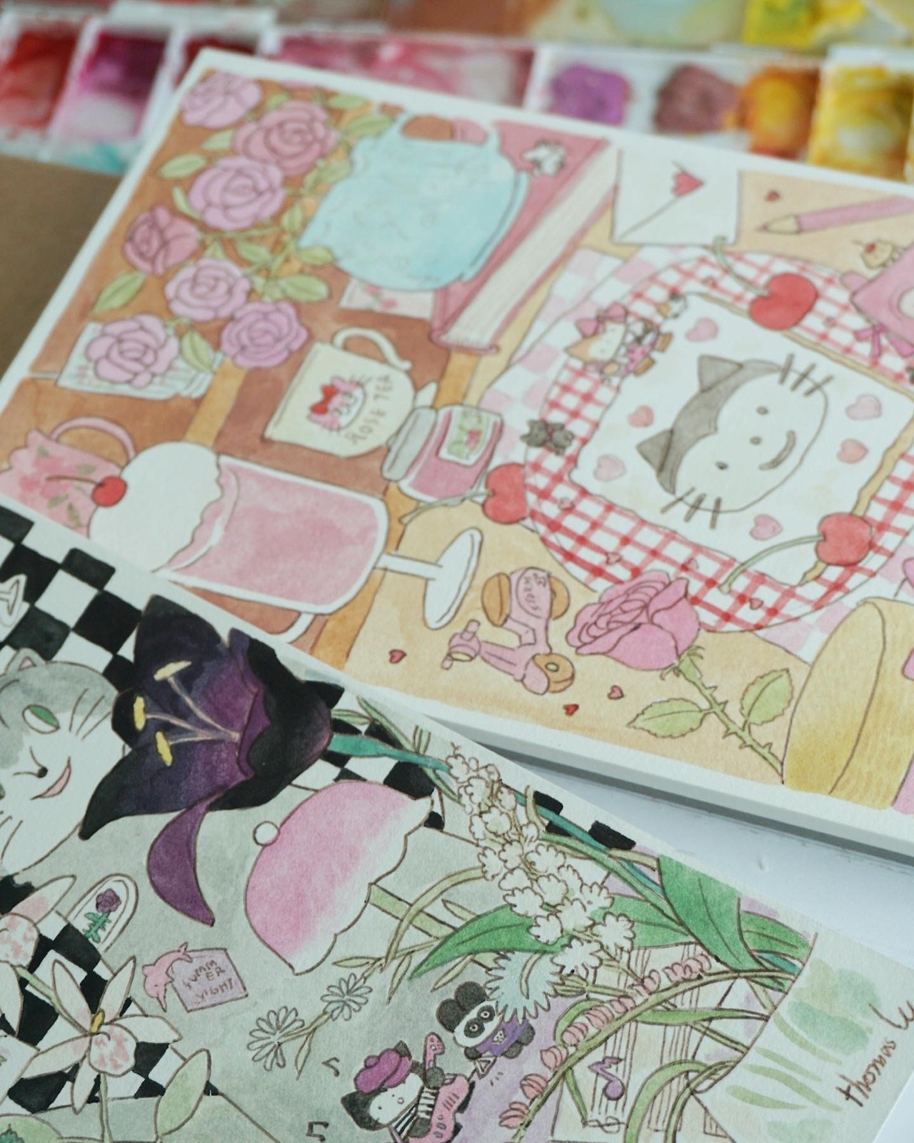 첫 시작은 작가 커플, 부부로 시작했지만 결혼한 지 2년쯤부터는 기획자와 작가 부부로 살고 있어요. 10년 동안 작가로 살다가 기획자의 삶을 시작한 저의 배우자 전포롱을 항상 응원하고 존경해요. 작년에 열었던, 기획자 전포롱과 그림작가 토마쓰리의 첫 프로젝트인 <2022 일력>은 성공적이었다고 생각해요. 프로젝트를 진행하면서 그림작가가 그림 작업에만 열중할 수 있다는 게 정말 행복했어요. 올해도 둘이 프로젝트를 하나 진행하고 있는데, 곧 텀블벅을 통해 공개할 예정이에요. 평생 이렇게 둘이서 재밌는 일들을 벌이며 살 생각을 하니 정말 신나요. 할아버지가 되어서도 재밌는 삶일 거 같아요.