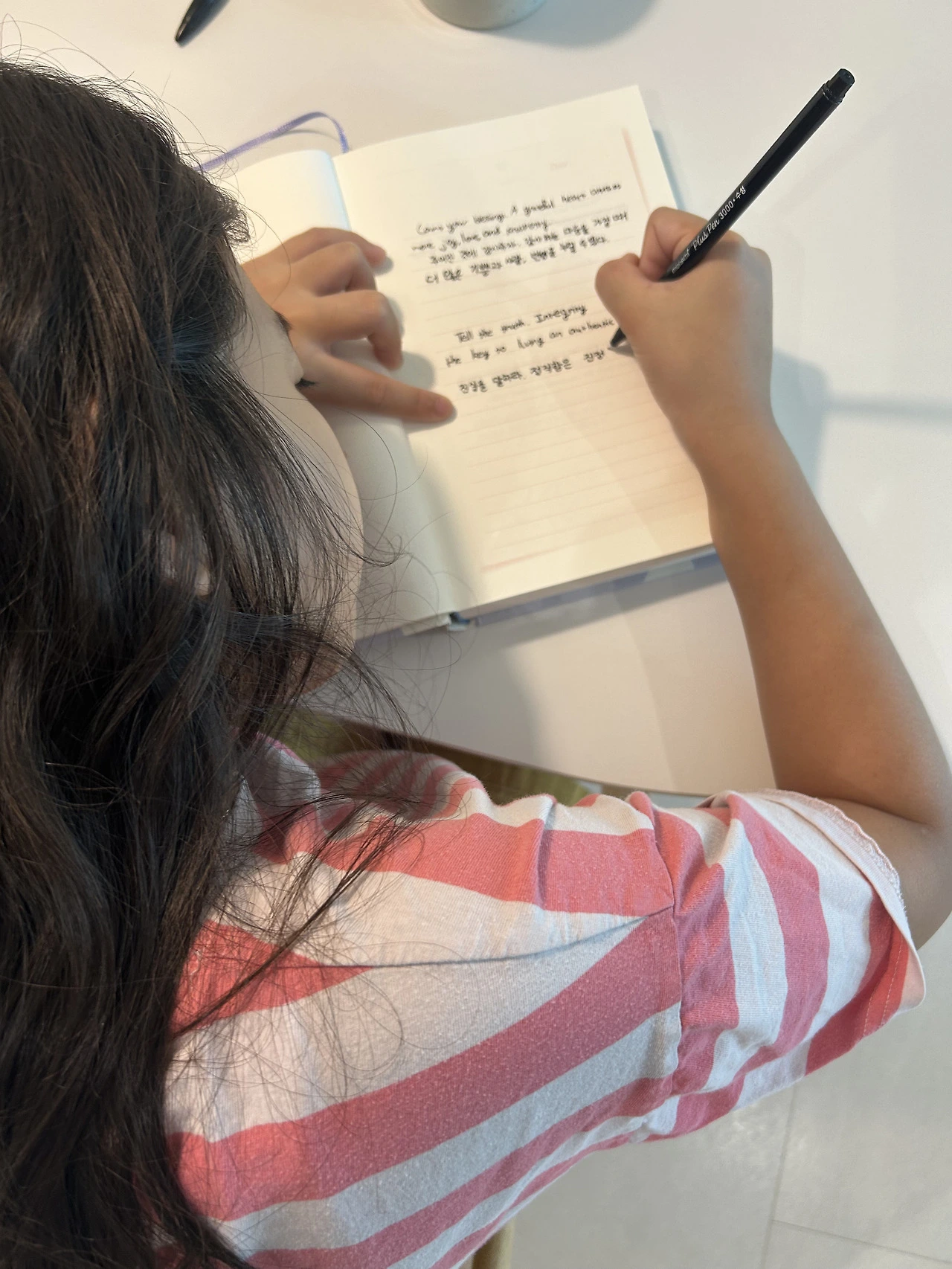 아이는 여기저기 허공이며, 식탁, 바닥 위 등 글씨를 쓰는 것처럼 재빠르게 손가락을 움직였다.