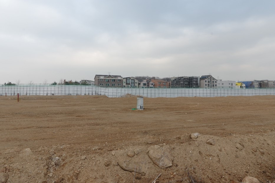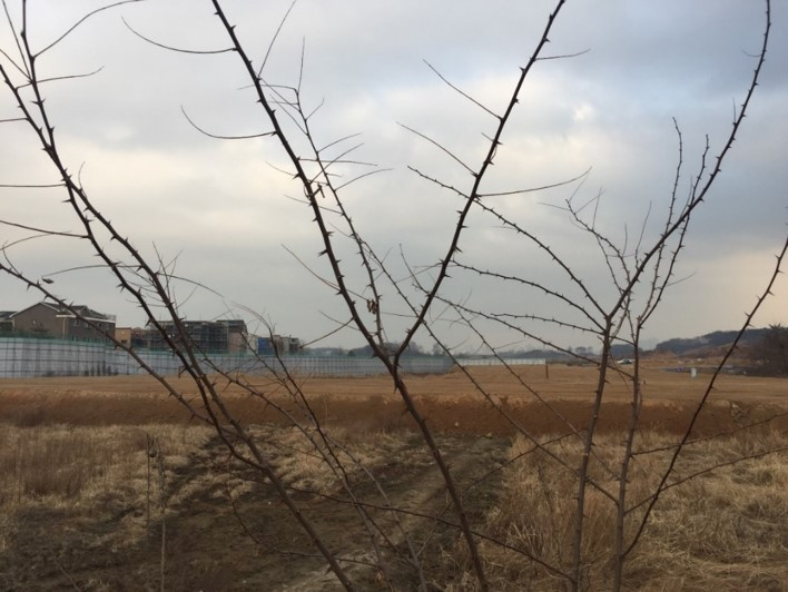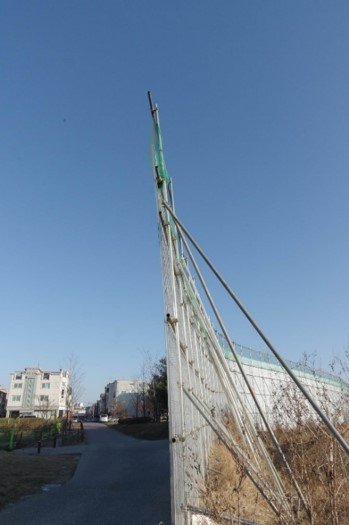 논밭 산책로로 이어지는 길목은 거대한 공사장 펜스가 가로막고있지만