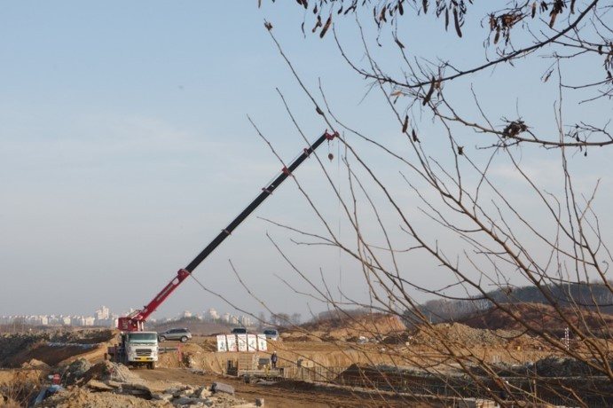 어제 구름한 점 없이 넓게 펼쳐졌던 하늘에 오늘은 커다란 크레인이 걸쳐졌다.