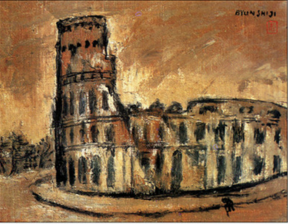 <"폭풍의 화가"라 불리는 변시지는 1926년 제주도에서 태어나, 1945년 오사카 미술학교를 졸업, 조선인 최초로 일전(日展)에 입선하였으며, 1948년 일본의 최고 중앙화단인 광풍회의 최고상을 수상하였다. 1957년 한국에 돌아와 서라벌 예술대, 한양대 등에서 가르쳤으며, 1975년에 제주대학교로 옮겨 작품활동을 하였다. 2013년 6월 지병으로 별세하였다.>
