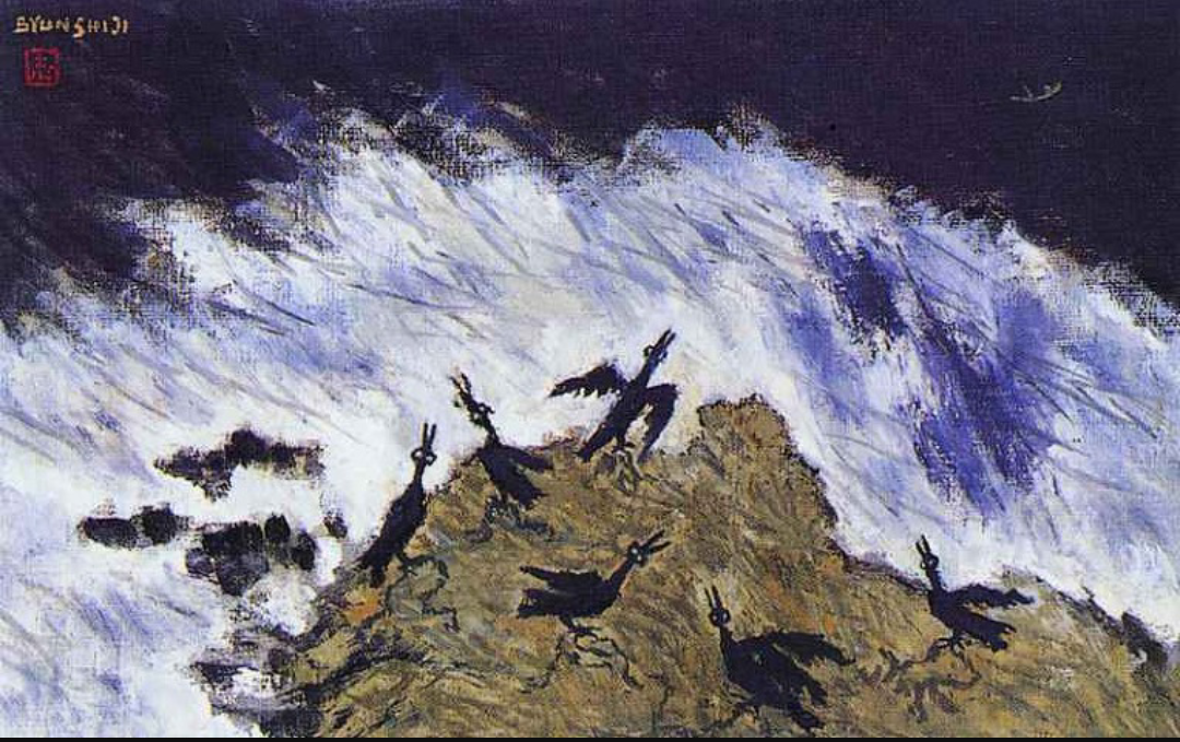<"폭풍의 화가"라 불리는 변시지는 1926년 제주도에서 태어나, 1945년 오사카 미술학교를 졸업, 조선인 최초로 일전(日展)에 입선하였으며, 1948년 일본의 최고 중앙화단인 광풍회의 최고상을 수상하였다. 1957년 한국에 돌아와 서라벌 예술대, 한양대 등에서 가르쳤으며, 1975년에 제주대학교로 옮겨 작품활동을 하였다.>