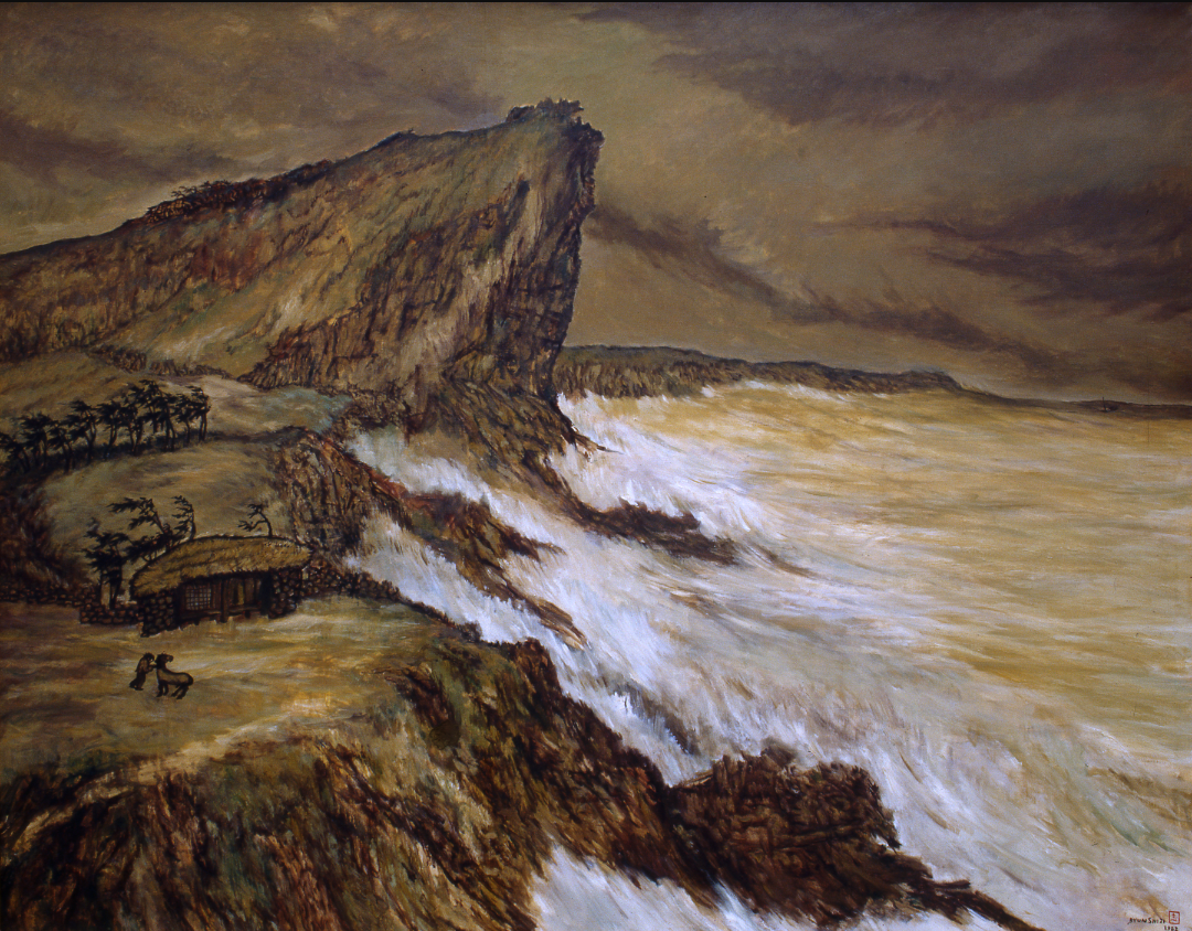<"폭풍의 화가"라 불리는 변시지는 1926년 제주도에서 태어나, 1945년 오사카 미술학교를 졸업, 조선인 최초로 일전(日展)에 입선하였으며, 1948년 일본의 최고 중앙화단인 광풍회의 최고상을 수상하였다. 1957년 한국에 돌아와 서라벌 예술대, 한양대 등에서 가르쳤으며, 1975년에 제주대학교로 옮겨 작품활동을 하였다.>