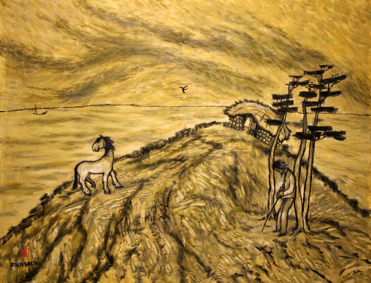 <"폭풍의 화가"라 불리는 변시지는 1926년 제주도에서 태어나, 1945년 오사카 미술학교를 졸업, 조선인 최초로 일전(日展)에 입선하였으며, 1948년 일본의 최고 중앙화단인 광풍회의 최고상을 수상하였다. 1957년 한국에 돌아와 서라벌 예술대, 한양대 등에서 가르쳤으며, 1975년에 제주대학교로 옮겨 작품활동을 하였다.>