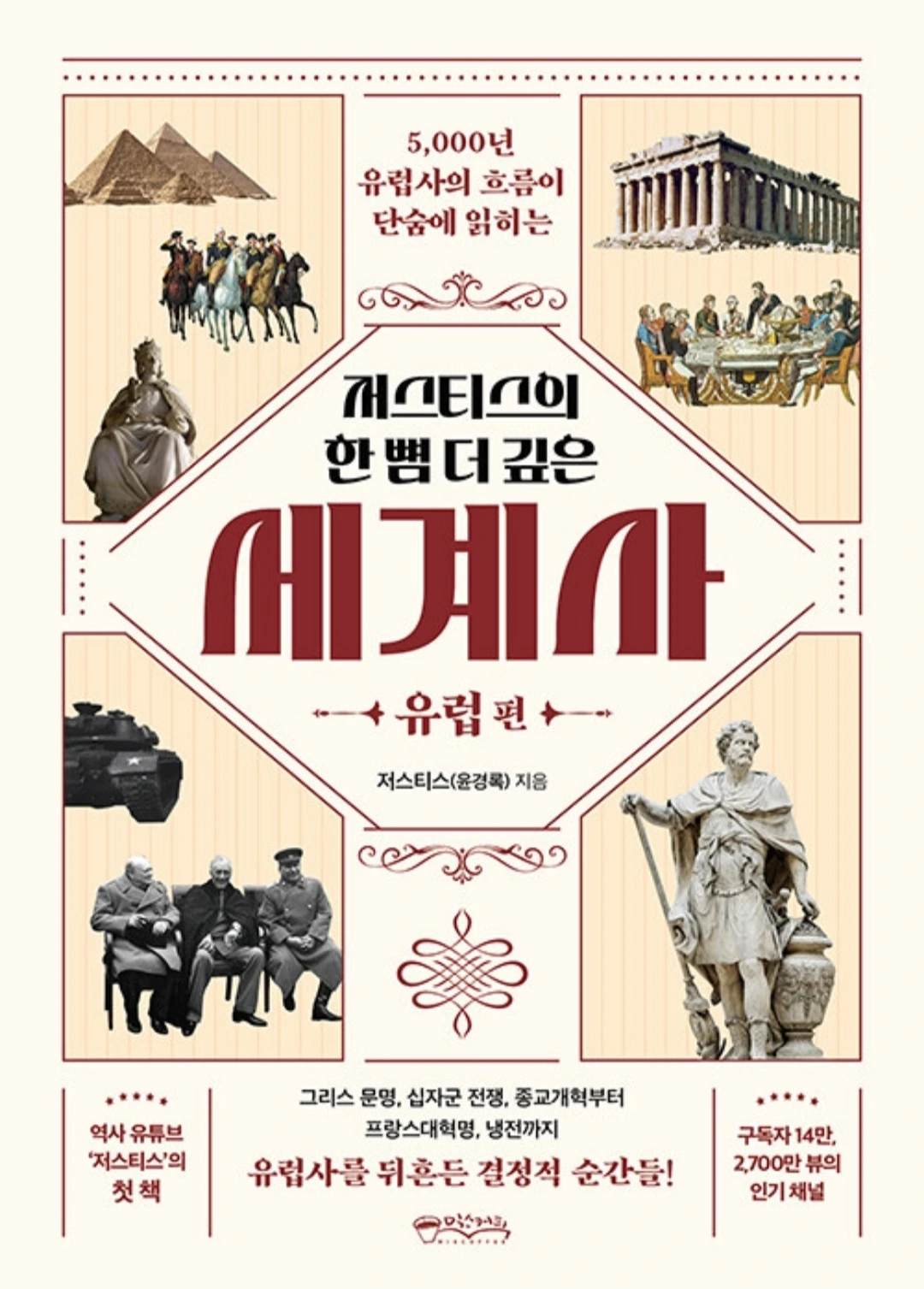 역사 유튜브 '저스티스' 의 첫 세계사 책! 저스티스(윤경록) 저자의 <저스티스의 한 뼘 더 깊은 세계사. 유럽 편>은 5000년 유럽사의 흐름을 아주 흥미진진하게 풀어낸 세계사 책이다.