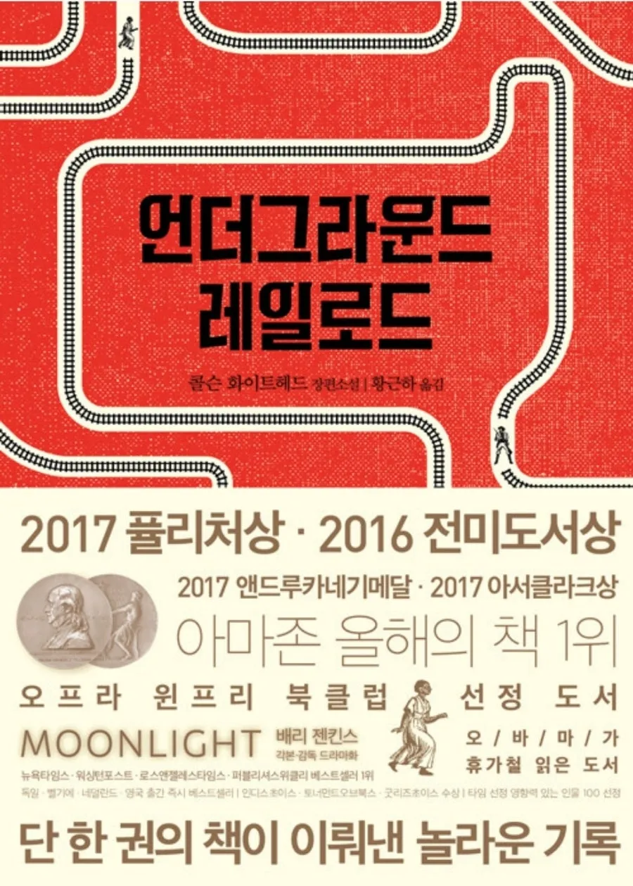 실존했던 흑인 노예 탈출 비밀 조직 '지하철도'를 실제 '지하철도' 로 상상해 쓴 작품! 저자는 어렸을 때 그에 대해 듣고 땅 속에 있는 진짜 철도일것 이라고 상상만하다가 나중에 실제 철도가 아니라 비유였음을 알고 약간 화까지 났지만, '실제 철도였으면 어땠을까?'라는 물음으로부터 이 소설을 구상했다고 한다. 저자는 노예제도 안에서 흑인들뿐만 아니라 백인들 역시 어떻게 피폐해져가고 있었는지, 흑인 내부에서는 어떤 갈등이 있는지, 결국 노예제도가 인간 모두를 얼마나 괴롭히는지를 강하게 환기시켜준다. 이 작품은 한 마디로 인간으로서 우리 모두가 우리 손에 쥔 자유를 어떻게 누려야 하는지를 보여주고 있는 셈이다. 폭력과 억압의 역사를 지닌 사람 누구에게나 공명을 일으키는 작품이라는 것. 이 작품은 마치 <걸리버 여행기>를 연상케한다. 코라의 여정은 노예제도의 보이지 않는 이면을 점층적으로 드러내며, 그 비극와 부조리를 조망하는 작품이다. 과거의 아픔을 조명하며 미래를 위한 희망을 이야기하는 <언더그라운드 레일로드>! 단순한 역사소설을 뛰어넘어, 현대사회에서도 여전히 중요한 이야기를 담은 이 작품! 역사적 사실과 상상력이 결합된 강렬한 이야기에 빠져들고 싶다면, <언더그라운드 레일로드> 추천한다. 미국의 어두운 역사에 대해 알 수 있을 것이다.