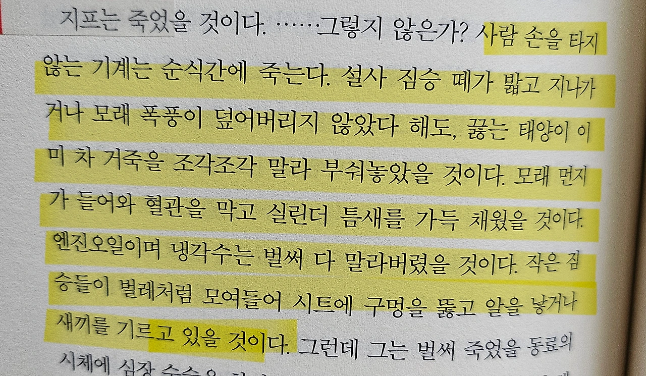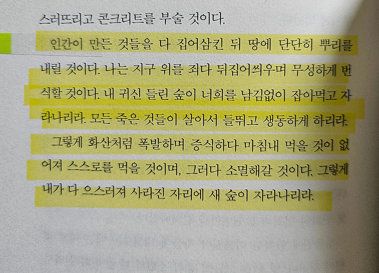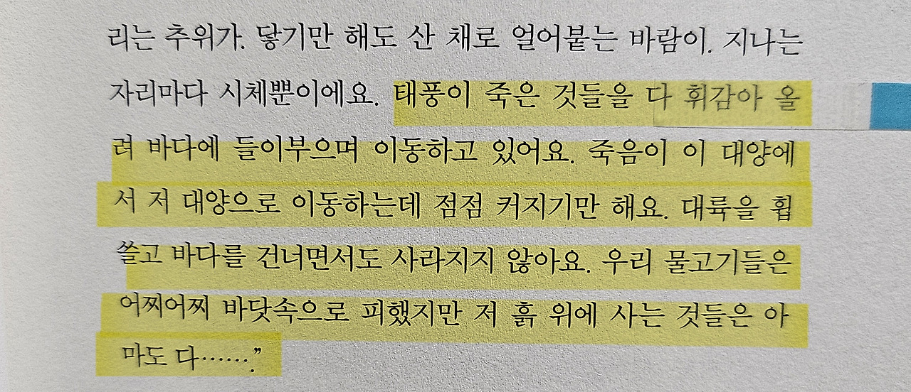 사람이 이해할 수 없는 대상에 대한 공포에 사로잡혀 있을 때는 좋은 판단을 하기가 쉽지 않다. 공포에 사로잡혀 있지 않을 때도 쉬운 일은 아니다. 변명할 마음도 자책할 마음도 없다. 당신도 이 안에서 살아간다면 나만큼도 쉽지 않을것이다. 통상 우리에게 반대 의견은 없고 누군가가 생각을 하면 그 생각은 전체의 생각이 된다.
