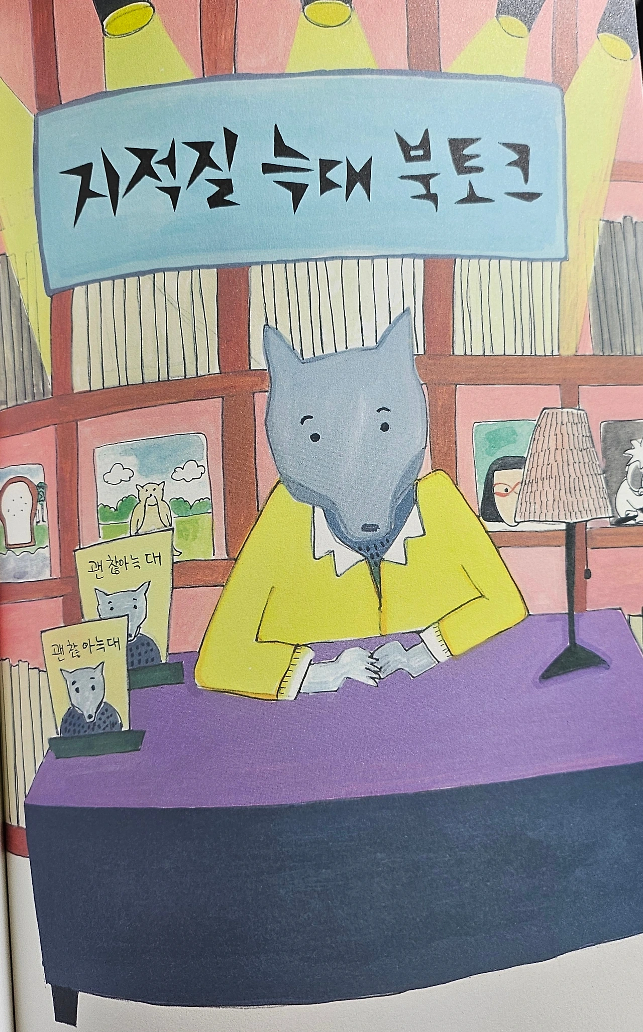 '괜찮아' 로 바뀌는 신비로운 말의 마법! 이상미 작가의 <지적질 늑대>는 늘 남의 잘못만 지적하던 지적질 늑대가 어느 날 예기치 않은 사건을 만난 뒤 괜찮아 늑대로 바뀌는 신비로운 이야기를 담은 그림책이다.