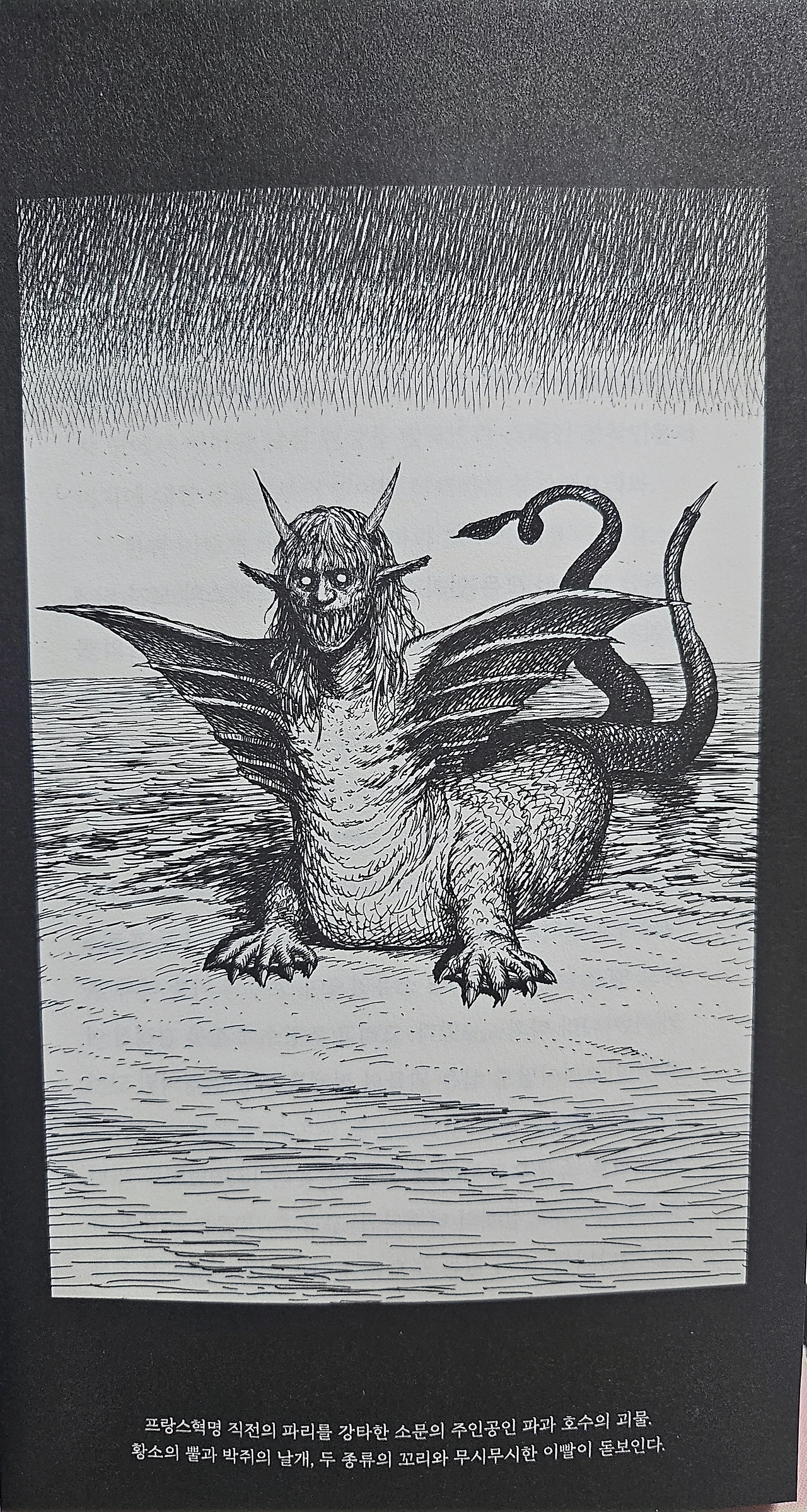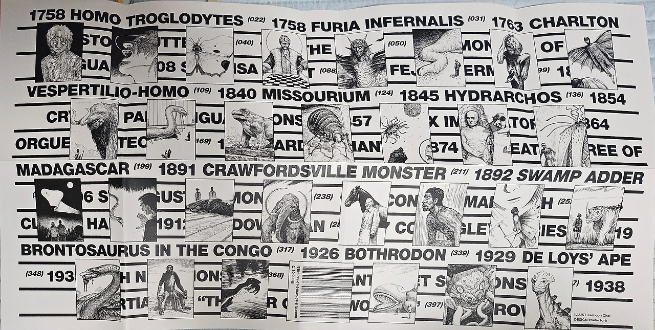 이 작품은 이산화 작가가 자료 수집과 집필에 4년동안 공들인 작품이자, <파묘>의 콘셉트아티스트 최재훈 작가의 생생한 괴물 일러스트이 수록된 작품이다. 이 작품은 치밀한 고증을 통해 괴물들을 생생하게 그린 작품으로, 평소 한 가지에 빠져들면 집요할 만큼 파고드는 저자 특유의 열정을 느낄 있는 논픽션 작품이다. 500페이지가 넘는 어마어마한 분량이지만, 마치 한 편의 소설을 읽는 듯한 착각에 빠질 정도로 괴물 이야기에 푹 빠지게 읽은 작품이다. 한마디로 괴물 백과사전 같은.. 초현실과 현실의 미묘한 경계를 도판 29점으로 구현해 낸 이 작품은 마치 현실에도 있을 법한 괴물들의 모습을 생생하게 그려내어, 마치 괴물들이 살았던 그 시기에 여행 갔다온 것처첨 너무나 생생하게 잘 표현했다.
