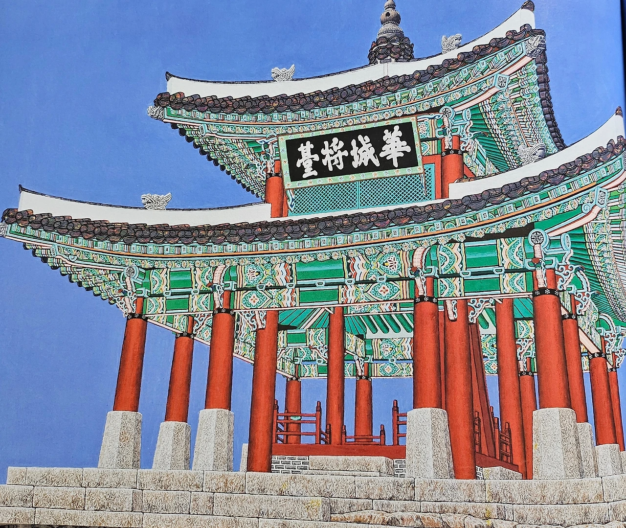 이 작품을 읽다보면 문화유산을 보는 자세가 바뀌게 된다. 어린이가 이 작품을 읽고 수원화성을 직접 거닐면 감동을 눈으로 확인할 수 있는 계기가 되고, 어른들은 우리 것에 대한 관심과 자부심을 갖게 해준다. 늘 그 자리에 있을 것만 같았던 숭례문이 화마에 처참히 무너질 때가 있었다. 이런 사실이 안타깝기만 했던 화가들이 우리만의 미학이 담긴 건축물들을 묵묵히 화폭에 옮겨 담았다. 구석구석 자료를 모으느라 수원화성을 수도 없이 드나들고, 정확한 단청의 묘사를 위해 그림을 그리는 내내 한 손에는 털이 빠진 가장 작은 붓, 그리고 다른 한 송에는 커다란 확대경을 들고 작업을 했다. 그렇게 해서 18점의 그림이 탄생할 수 있게 되었다. 그래서인지 장인 정신이 무엇인지 제대로 알게 된 계기가 되었다. 역사는 어렵게 공부하는 것이 아니라, 우리가 걸어온 길을 찬찬히 확인하는 작업이라는 말이 있듯이, 시공을 초월한 아름다움으로 재탄생한 수원화성의 모습을 눈으로 담아보는게 어떨까. 마치 문화유산을 직접 경험하는 듯한 감동과 우리 건축물에 대한 자부심을 높이는 데 좋은 경험이 될 것이다.