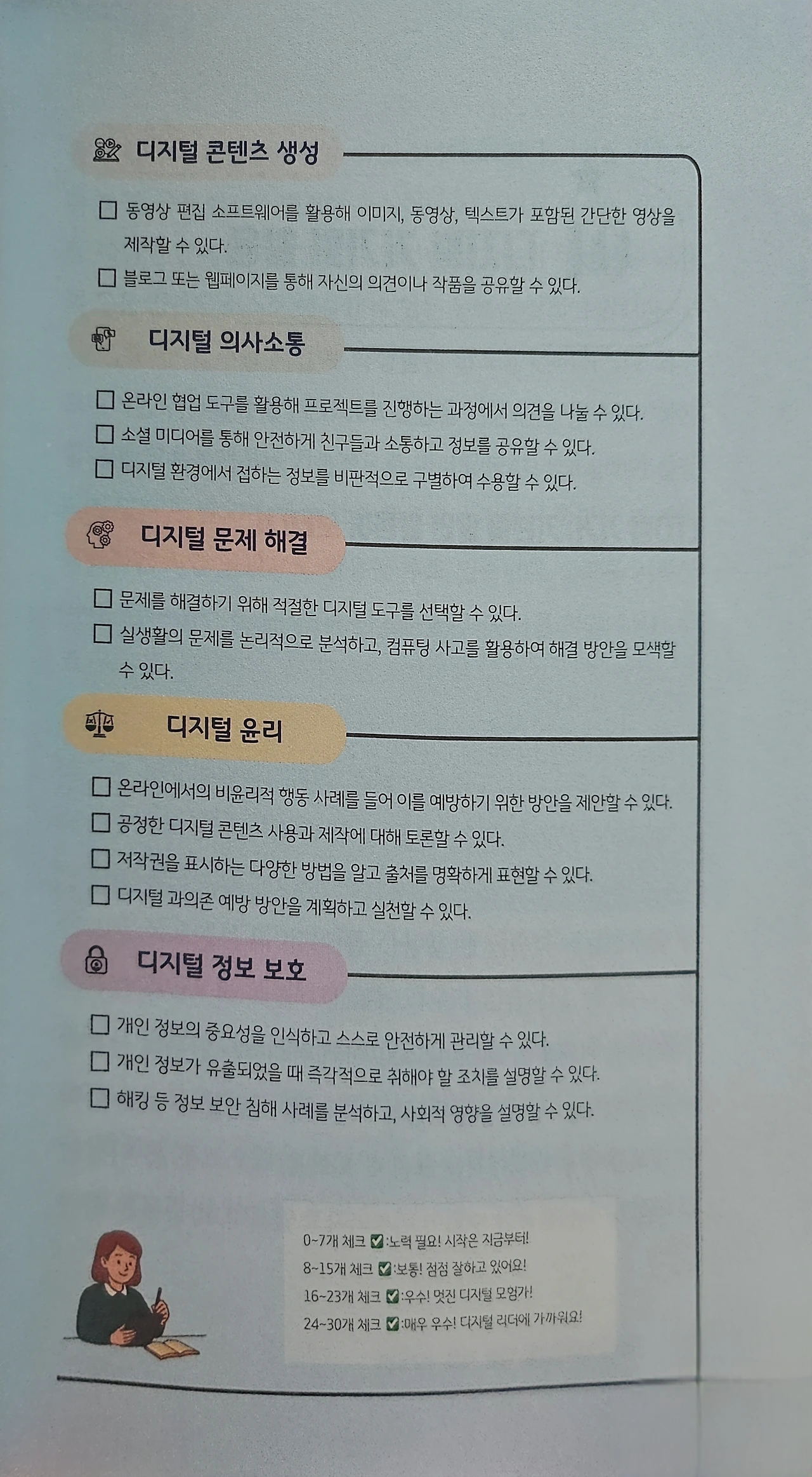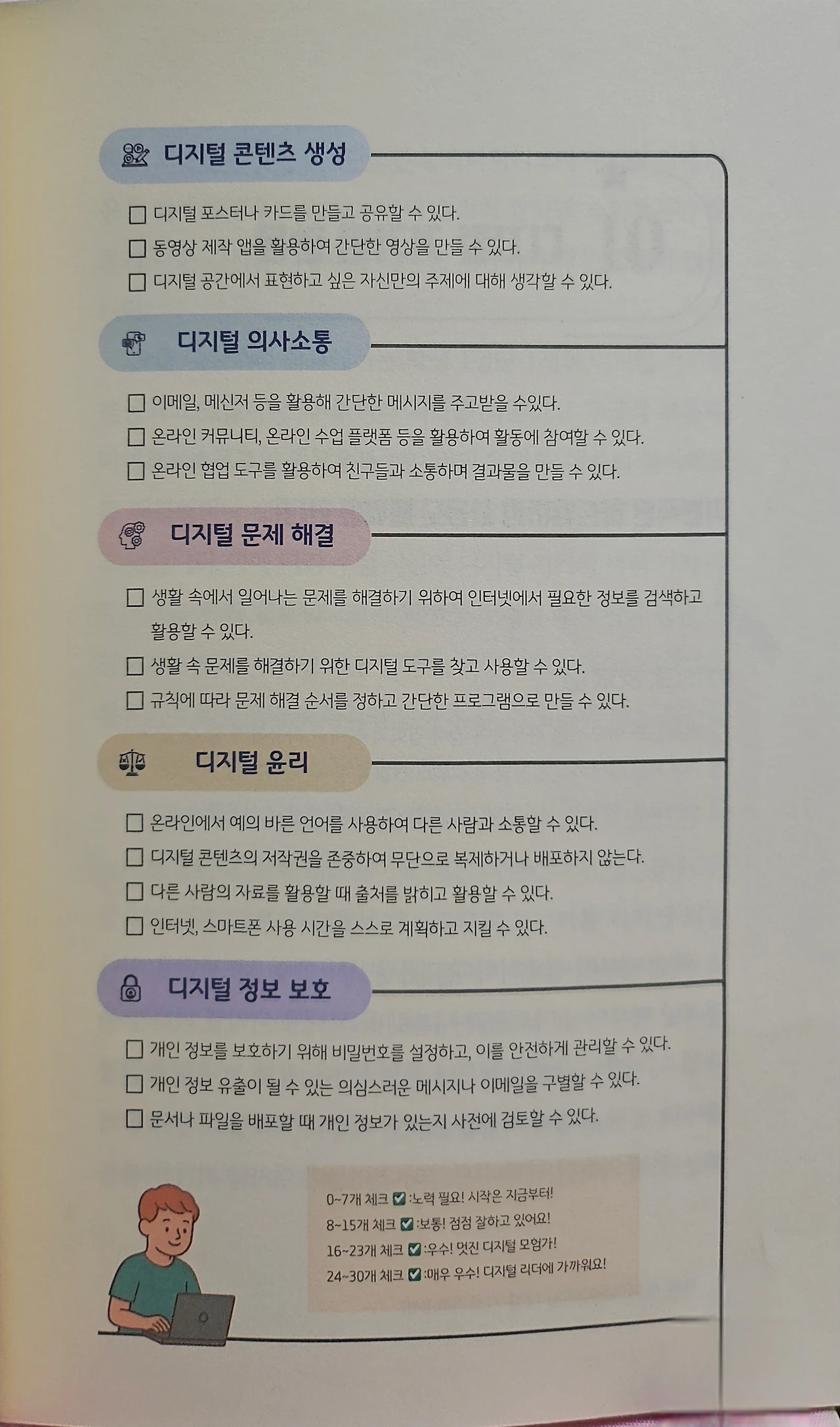 디지털 시대에 아이를 어떻게 교육하고 이해할 것인가, 그리고 디지털 윤리와 정보 보호 교육을 통해 아이들이 온라인에서 지켜야 할 댓글 예절, 저작권 인식 , 개인 정보 보호 등 윤리적 기준을 구체적으로 말해준다. 한마디로 이 작품에서는 기술 중심이 아니라, 사람 중심의 교육을 강조하고 있다는 것. 부모와 교사가 아이의 디지털 학교 생활을 어떻게 이해하고 도울 수 있는지를 안내하는 생활형 교육 안내서 같은 작품이다.