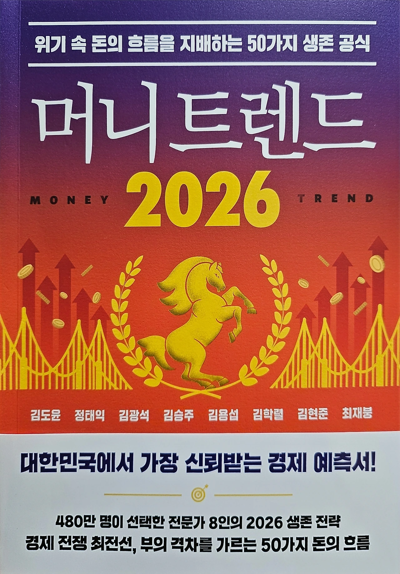 위기 속 돈의 흐름을 지배하는 50가지 생존 공식! 김도윤 외 7인 저자 <머니 트렌드 2026>는 2026년까지의 경제 흐름을 예측하고, 투자자와 소비자 모두에게 실질적인 전략을 제시하는 통찰력 있는 전망서이다.