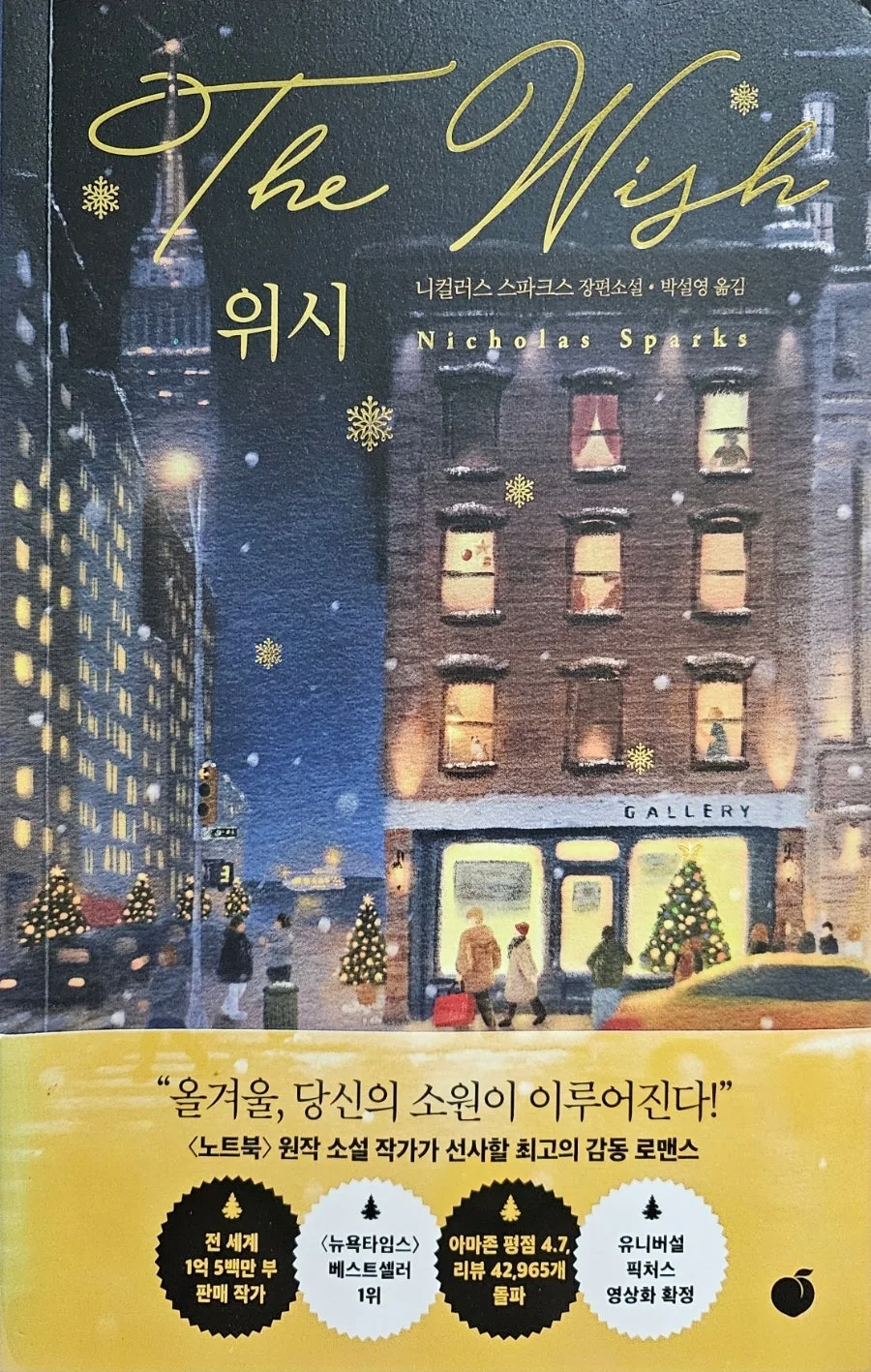 최고의 감동 로맨스! 니컬러스 스파크스 저자 <위시>는 첫사랑의 기억과 삶의 마지막 순간이 교차하는 감동적인 겨울 로맨스 소설이다.