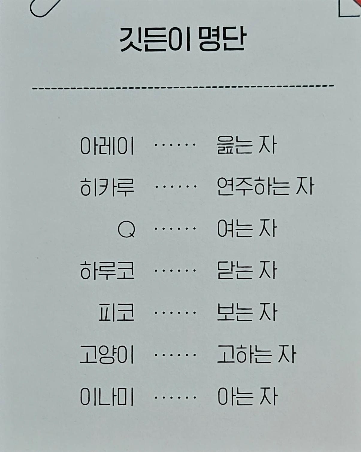조금 많이 헐렁한 수학 천재 Q . "엥?" ""에엑!" 하며 촐랑대지만 어릴 적 엄마를 잃은 아픔을 딛고 자신의 재능을 미워하지 않기로 했다. 세상이 엉망진창처럼 보일 때 한결같이 가지런하고 절대로 변하지 않는 수의 규칙을 찾는다. 여름으로 접어드는 유월의 어느 밤, 습한 어둠을 뚫고 도착한 신의 예고. 복제된 세계에서 세력을 키운 그림자가 현실 세계로 까맣게 몰려나오기 전에 일곱 명의 아이들은 힘을 모아 마지막 문제를 해결해야 한다.