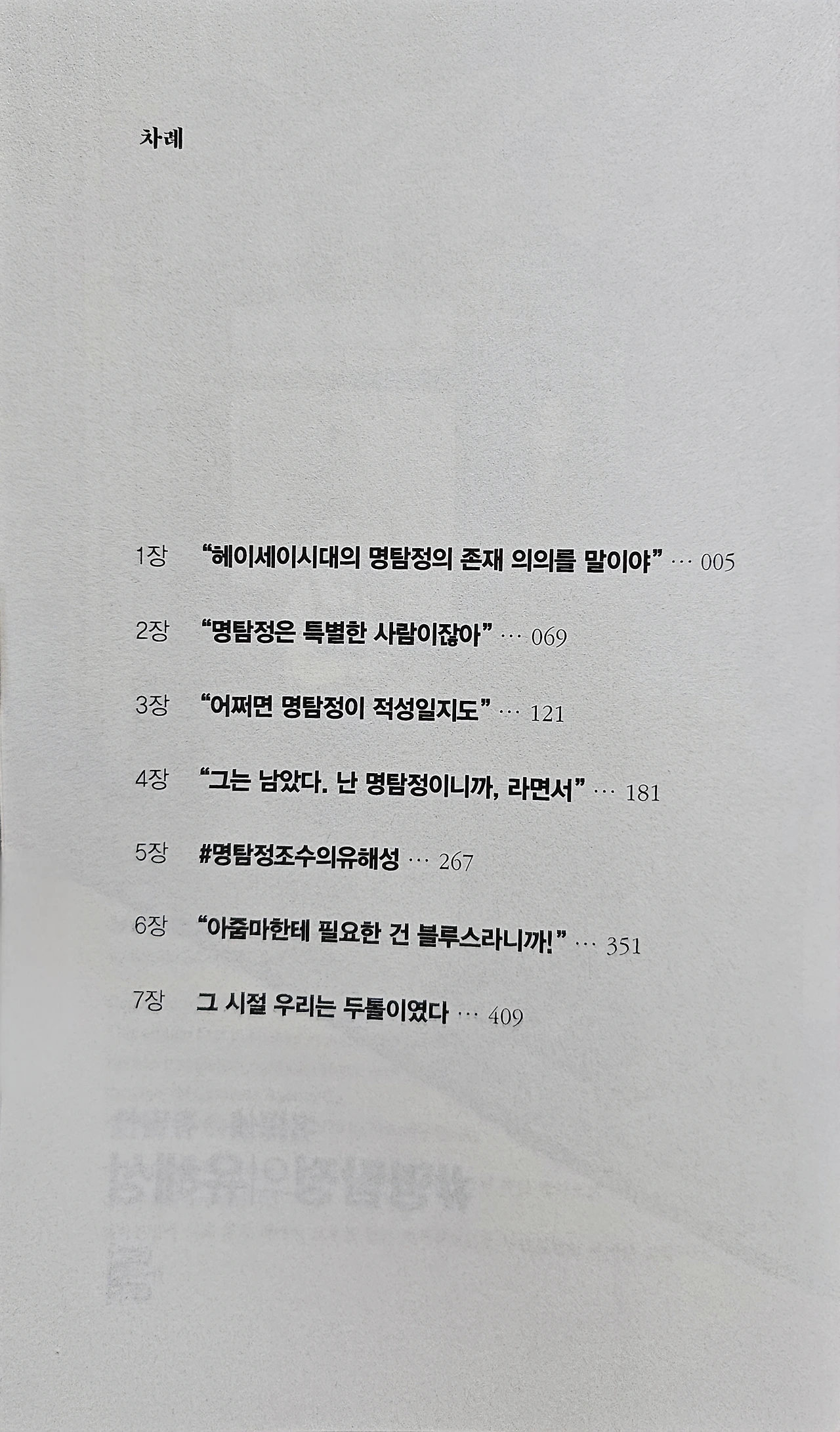 완벽한 최선의 결과를 내는 건 늘 불가능했어. 그럼 차선의 결과에 착지하고자 노력하는 게 어른의 판단이다.....차선이면 충분하잖냐? 충분하고도 남잖냐? 좌우지간 그때 도와줘야 할 사람들이 있었다고. 사건의 피해자가, 범인으로 의심받는 사람이, 도와달라고 명탐정한데 매달리는 사람이 많았어. 우리 는 지금 이 순간을 살며 지금 이 순간 추리하는, 지금 이 순간의 존재였어. 그렇기에 명탐정이었던 거야.