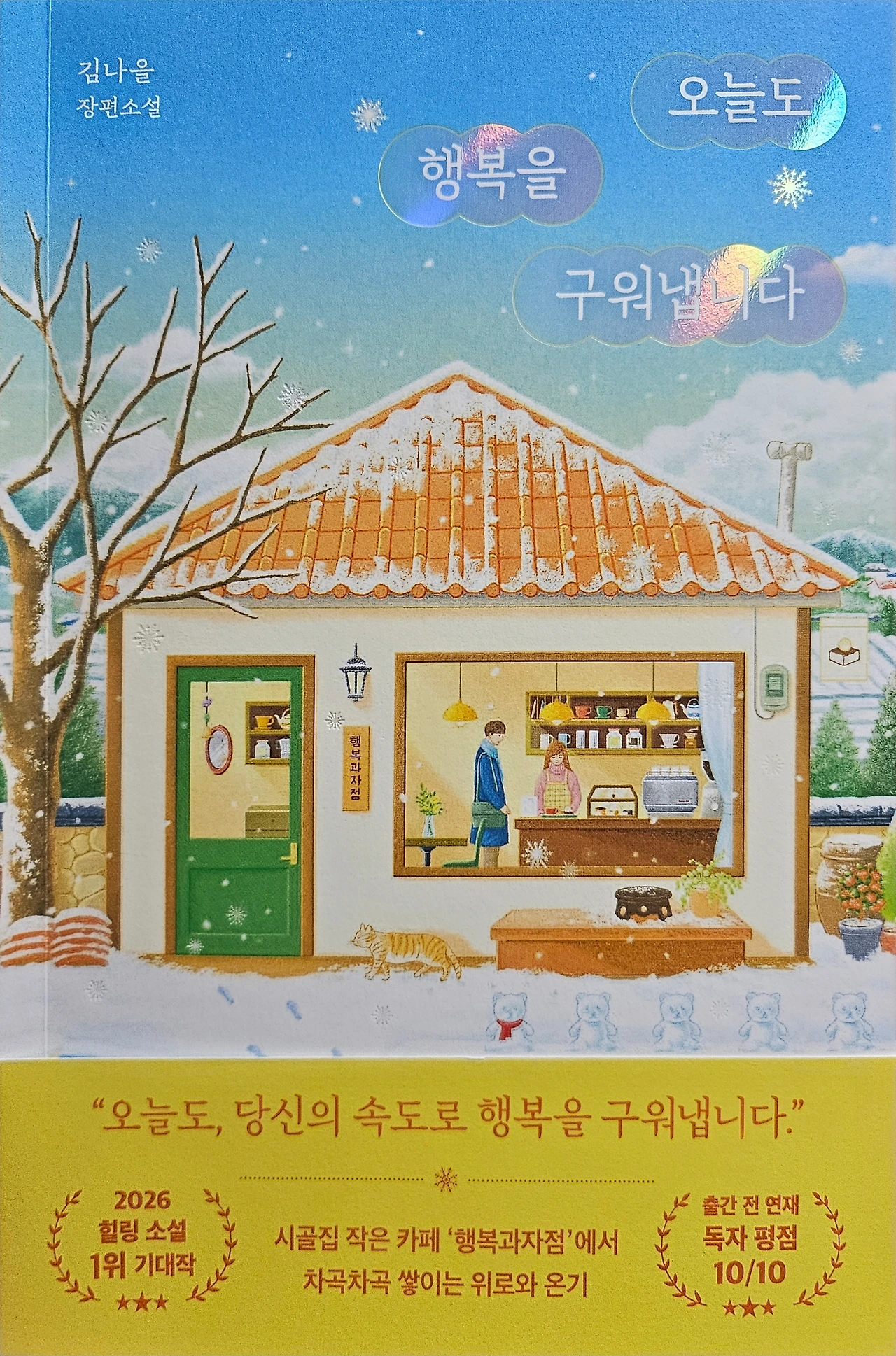 소소한 일상 속에서 발견한 따뜻한 위로! <오늘도 행복을 구워냅니다>는 나를 행복하게 해주는 것들을 듬뿍 담아서 쓴 이야기이로, 주변 사람들의 다정함, 달콤한 디저트, 여유로운 하루, 겨울 풍경처럼 일상의 작은 장면들이 마음을 따뜻하게 채워 주는 순간들을 담은 작품이다. 이 작품은 2026년 힐링 소설 1위 기대작으로, 시골집 작은 카페 행복과자점에서 차곡차곡 쌓이는 위로와 온기를 담아낸 힐링소설이다. 도시의 생활에 지쳐 마음도 차갑게 식어버린 날, 이 작품의 주인공 유운은 시골로 내려가 작은 과자점을 열게 되면서 카페에 저마다의 사연을 안고 있는 사람들이 오면서, 위로와 온기를 얻게 된다. 윤오는 카페의 단골손님으로, 동네 정보에 밝고 스스럼없지만 정작 자신의 이야기는 감추고 사는 사람이다. 도영, 오랜 공시 생활을 견딘 인물이고, 은정은 도시에서 귀농한 인물이다. 그리고 현서는 대학원을 그만두고 커피로 길을 튼 인물이다. 낡은 창문을 고치고 오래된 부엌을 정리하여 행복 과자점을 연 유운의 이야기! 시골 마을의 작은 카페 행복과자점 중심으로 이야기를 그린 이 작품은 눈 내리는 풍경이 인상적이고, 따뜻한 공간이 주는 정서적 안정감을 느끼게 하는 작품이다. 큰 사건은 등장하지는 않지만, 일상 속에서 발견하는 소소한 행복과 인간관계를 섬세하게 그린 이 작품은 차분하고 문체가 감성적이라, 읽는내내 마음이 편안해지고 따뜻해지는 느낌을 받게 되는 작품이다.