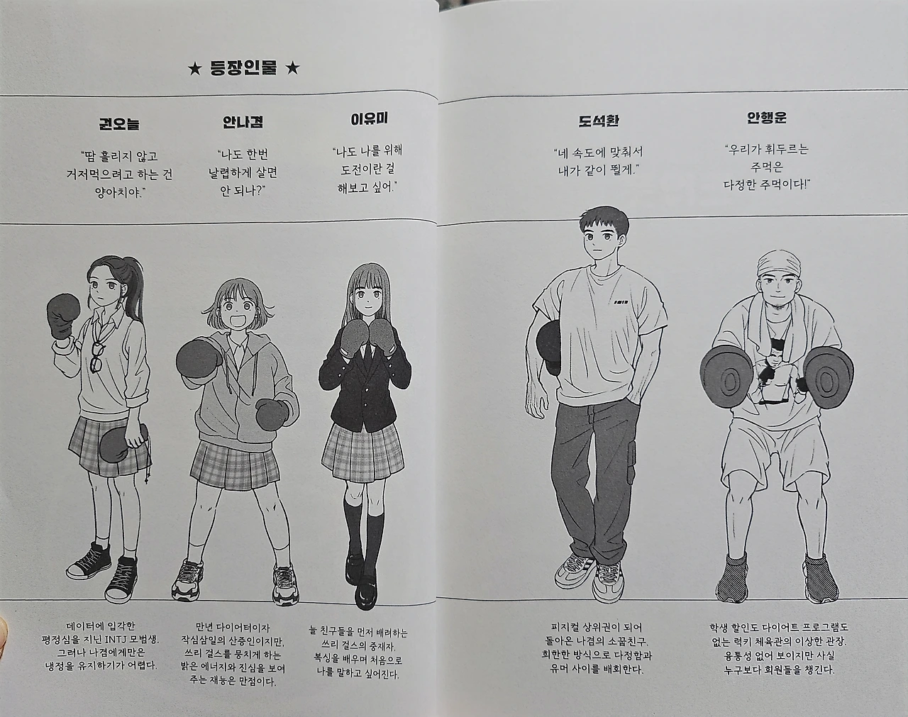 링 위에서 통괘하게 나누는 이들을 보면서 청소년 시절에 친구와의 관계에서 느꼈던 고민에 대해 생각해보게 한다. 갈등을 회피하는 청소년들에게는 친구와 건강하게 싸우는 방법을 일깨워주는 작품으로, 복싱의 잽처럼, 사람과 사람 사이에도 적절한 거리와 리듬이 필요하다라는 것을 알게 된다. 친구 관계는 무작정 가까워지는 관계가 아니라 서로를 존중하고 알아가는 과정을 통해 친구와의 관계의 거리가 얼마나 중요한지를 일깨워준다. 복싱 링 위에서 주멱을 부딪치며 감정을 표현하고, 갈등을 마주하고 해소하는 모습을 통해 우리는 친구와의 진심을 나누는 법을 배우게 된다. 이 작품은 친구들은 다 변화하는데, 나만 변화하지 않고 제자리인 느낌, 과거의 기억 때문에 친구에게 솔직하지 못한 마음, 등 누구나 한번쯤은 겪어봤던 감정들을 솔직하게 그려내어, 읽는내내 공감을 하게 된 작품이었다. 유쾌하고도 진정성 있는 시선, 사춘기의 감정을 깊이 있게 그려내어 섬세하고, 삶을 스포츠에 비유하는 문장들을 읽는내내 밝고 긍정적인 기운을 얻게 되는 작품이다. 이 작품은 나겸이 체육관에서 만난 다양한 이웃들을 만나면서 현대 사회에서 느낄 수 없었던 따뜻한 공동체를 알게 되고, 무뚝뚝한 듯 다정한 소꿉친구와 깐깐해보이지만 사실 누구보다 회원들을 챙기는 체육관 관장, 복싱을 시작하면서 새 삶을 찾는 시니언 액션 배우 할머니 등 복싱을 통해 나와 다른 친구를 이해하는 나겸을 보면서 우리는 더 많은 사람을 끌어당기는 방법을 배우게 된다. 개인주의가 만연한 시대! 연대감과 더불어 살아가는 마음을 통해 읽는내내 깊은 울림을 느끼게 되고, 다정함과 용기, 소통의 힘을 생생하게 느껴지는 작품이었다. 서로 다른 성격을 가진 세 소녀들을 통해 진정한 우정이 무엇인지를 알게 된다.
