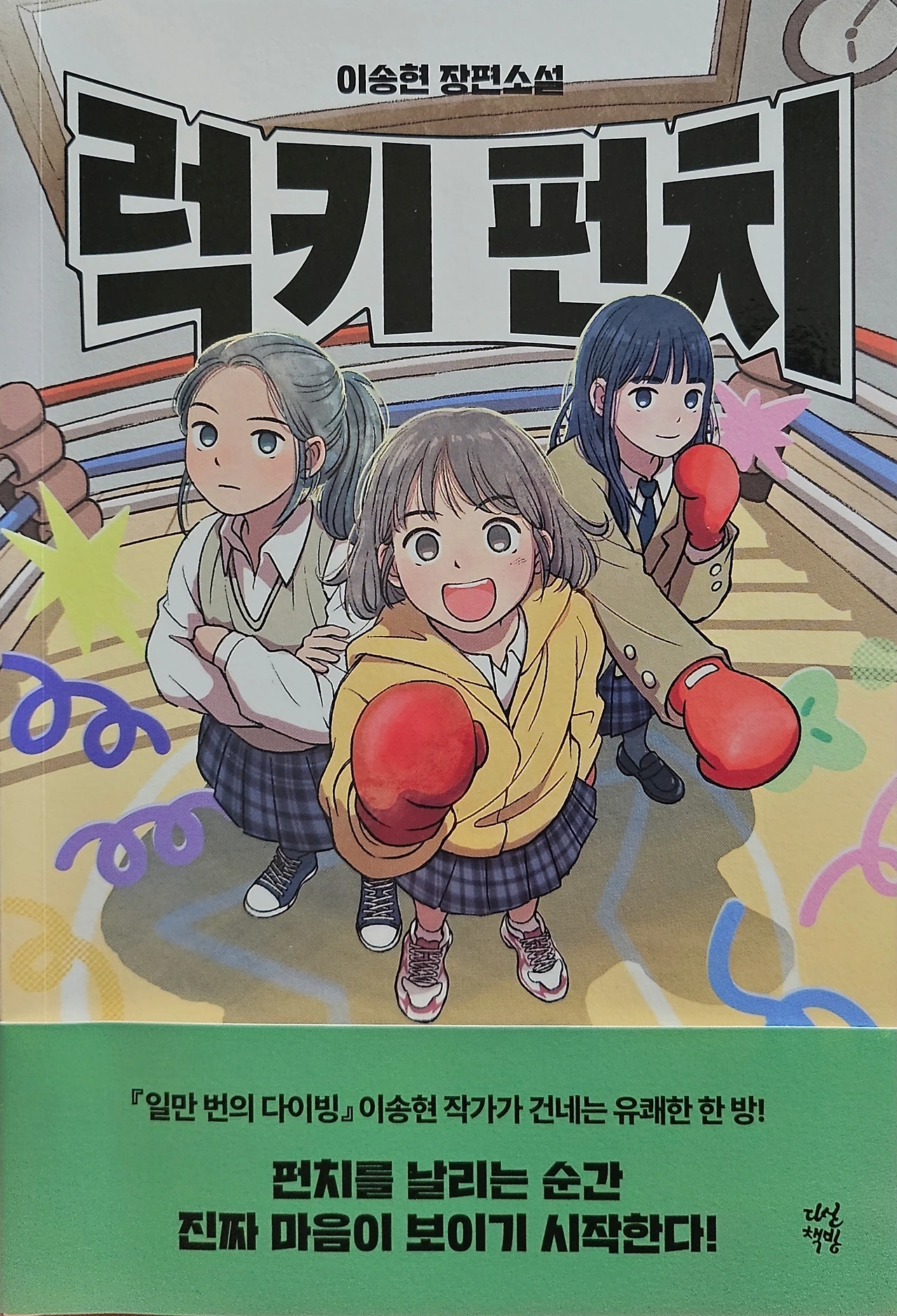 십 대 감정과 고민을 유쾌하게 그린 소설! <럭키펀치>는 청소년 시절 누구나 느끼는 현실적인 고민과 감정을 그린 작품으로, 복싱이라는 스포츠를 통해 세 소녀의 고민과 우정을 그린 성장소설이자 스포츠 소설이다. 지난 번 이송현 작가의 '일만 번의 다이빙' 을 재미있게 읽었는데, 다산북스 출판사에서 작가님 신작이 나와서 책을 보내준다고 하길래, 고민도 없이 받아보았다. 역시나 한마디로 재미있다. 이번 신작인 '럭키펀치' 는 한번 링 위에 올라서면 화해를 하든 싸움을 하든 끝을 봐야하는 복싱을 소재로하여, 처음으로 갈등을 겪게 되는 세 소녀가 주먹을 통해 속마음을 털어놓게 되는 이야기를 담은 청소년소설이다. 밝고 활기찬 성격, 복싱을 통해 자신을 포현하려는 '나겸' , 이성적이고 똑똑하고, 갈등 상황에서 중심을 잡는 '오늘', 상냥하지만 거리감 있지만, 점차 마음을 열어가는 '유미' 세 소년의 이야기를 담은 이 작품은 풋워크, 잽, 훅, 어퍼컷를 챕터 제목으로 활용하여 호기심을 자극한다. 단순한 스포츠 소설보다, 관계의 본질과 성장의 의미를 담은 이 작품은 럭키 체육관이라는 공간에서 주먹을 부딪치며 이전까지 몰랐던 서로에 대해, 그리고 자기 자신에 대해 배워가는 이들을 보면서 진정한 소통과 관계가 무엇인지 깊이 있게 고민하게 된다. 가깝기에 더 알기 어려운 존재가 바로 친구이다.