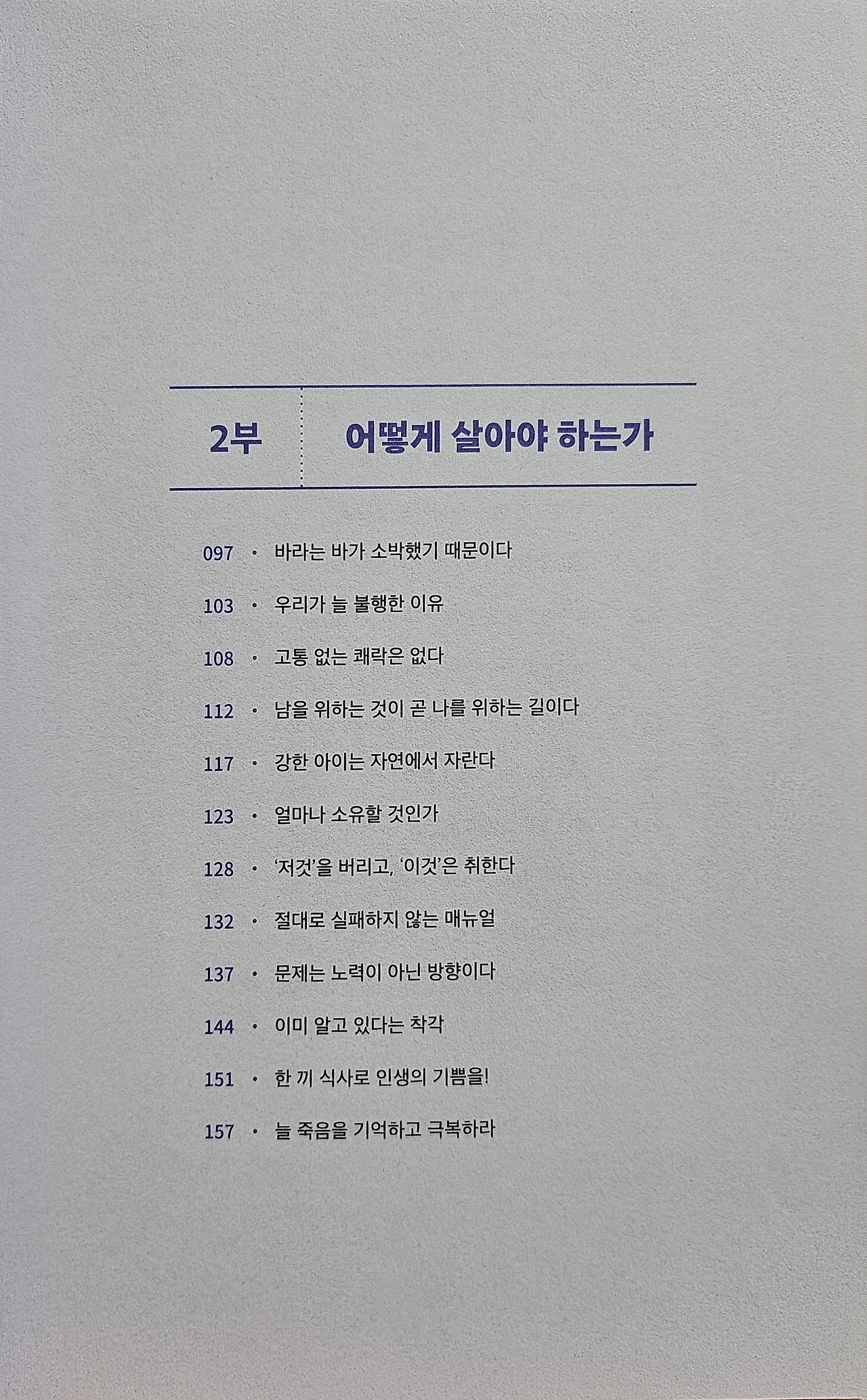 우리는 성공 후에도, 돈을 엄청나게 번 후에도 계속 앞으로 나아가야 한다. 죽음을 생각하지 않으면 성공 후에 그 자리에 머무르게 된다 . 머무는 삶은 견디는 삶이고 녹슬어가는 삶이다. 우리는 녹슬어 사라지지 말고 닳아서 사라져야 한다. 닳아서 사라진다는 것은 어려운 일이 아니다. 어떤 순간에도 한 걸음만 앞으로 더 나아가면 된다.