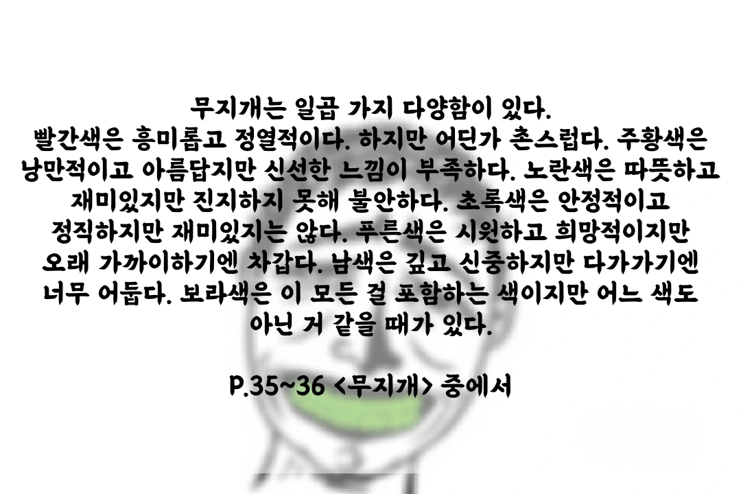 이 작품은 가르치는 책이 아니라 친구 같은 책이었고, 언제든 꺼내서 읽으면 깊은 위로를 받을 수 있는 책이다.