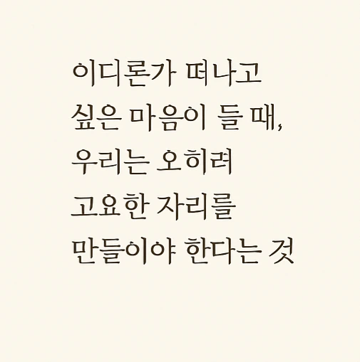멀리 떠나기보다, 잠시 멈춰 숨을 고르는 고요한 자리를 만들라고.
