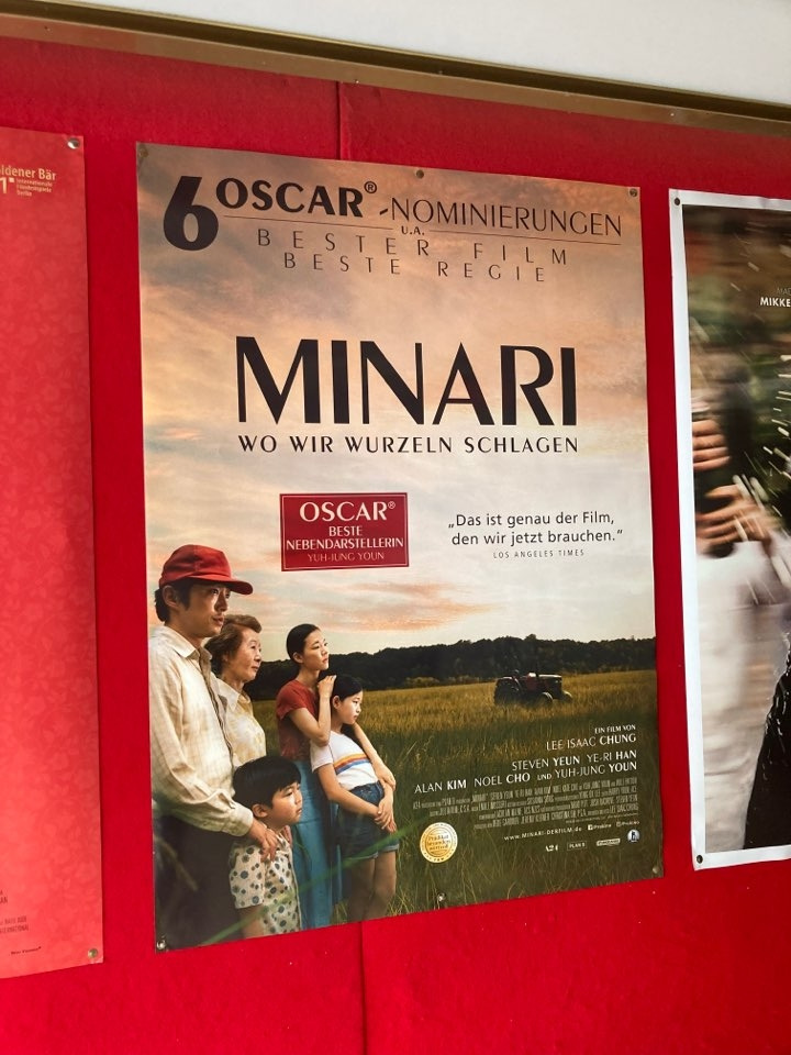 <미나리> 영화 리뷰나 영상 언어 관련해서는 사실할 수 있는 말이 별로 없다. 또한 나는 이민자도 아니기에 영화 전반적으로 녹아져 있는 이민자 정서를 이야기할 수도 없다. 그저 가볍게, 독일에서 영화관을 방문해 한국 배우가 나온 영화를 본 경험을 짧게 적고자 한다.