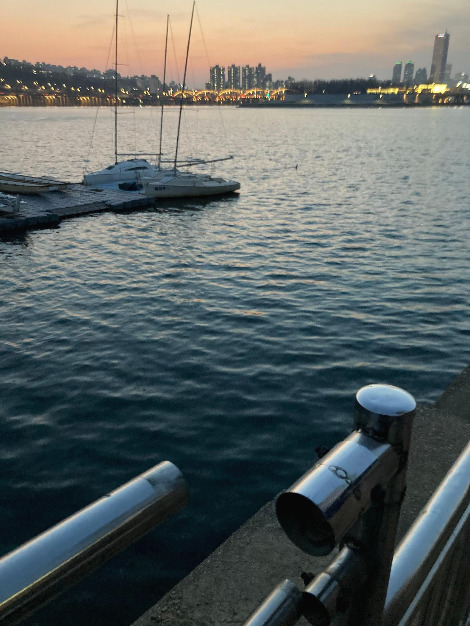 한강. 일렁이는 한강 물결을 보면 많은 생각이 든다. 노을이 이미 져버린 뒤의 한강 물결은 차갑기 그지없다. 차가움 속에서도 차가운 바람을 함께 맞고 있는 동기들과 함께 또다시 한강에 갔다. 한강과 동기들.