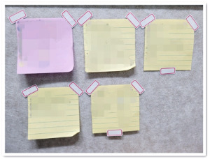 핸드폰에 메모를 하지만, 메모를 보고서도 실천하지 않아 지저분해지는 것도 싫어서 핸드폰과 케이스 사이에 메모를 붙여 다른 사람이 보는 게 싫으면 빨리 처리하자 라는 압박감을 주는 방법을 쓰기도 한다. 계획을 실천하기 위해 다이어를 열거나 핸드폰을 꺼내 들어야 하는 절차 없이 바로 그 장소에 가서 할 일이 눈에 보여야 걸리적거리는 일을 일찍 치우기 쉽다.
