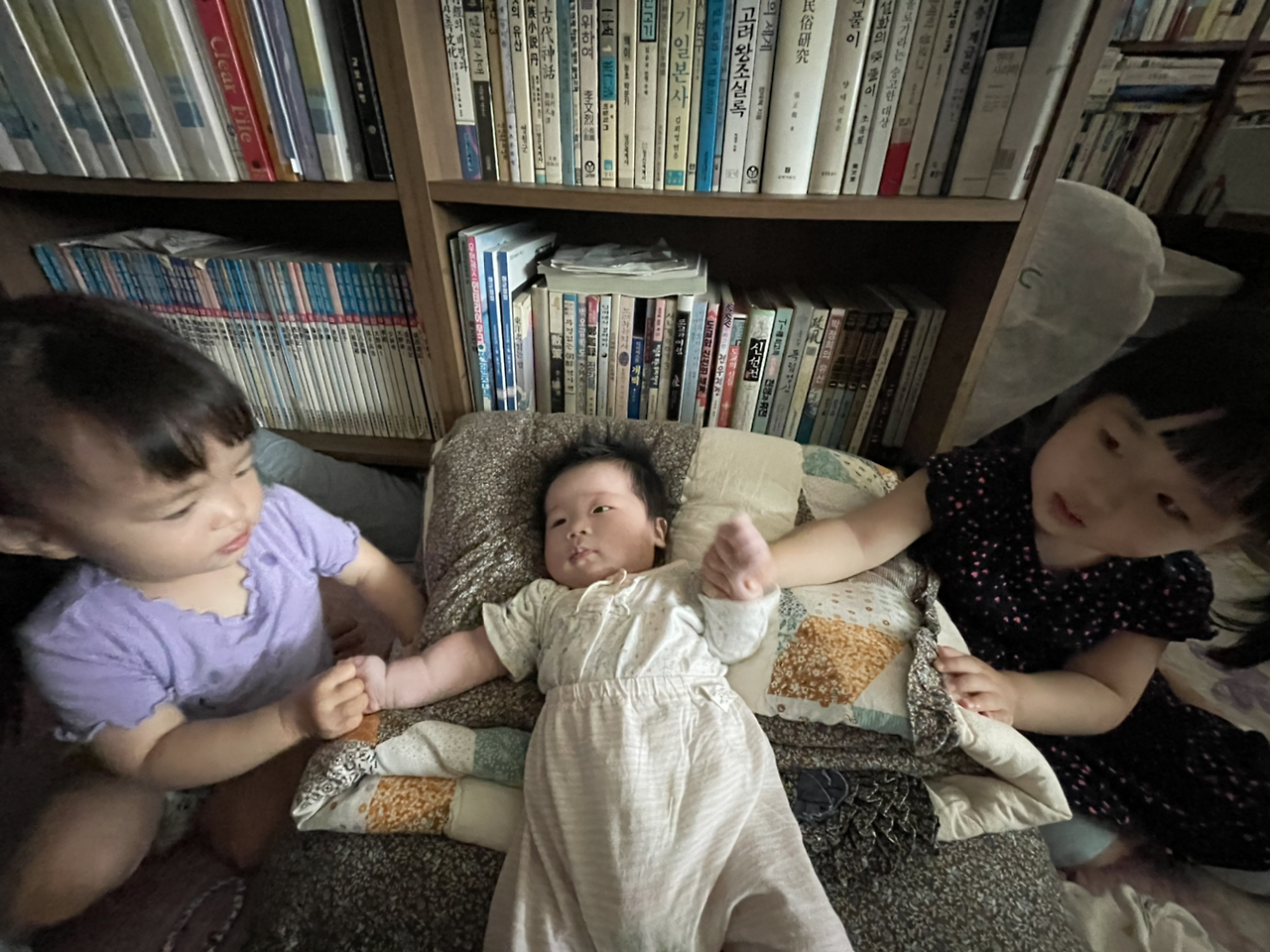 둘째 출산휴가로 속초인 본가에 내려와 있다. 육아휴직 중인 동생이 내가 속초 한 달 살기로 본가에 내려간다고 하니 덩달아 내려왔다. 덕분에 본가는 아이들 울음소리, 웃음소리, 옹알이 소리로 가득하다.