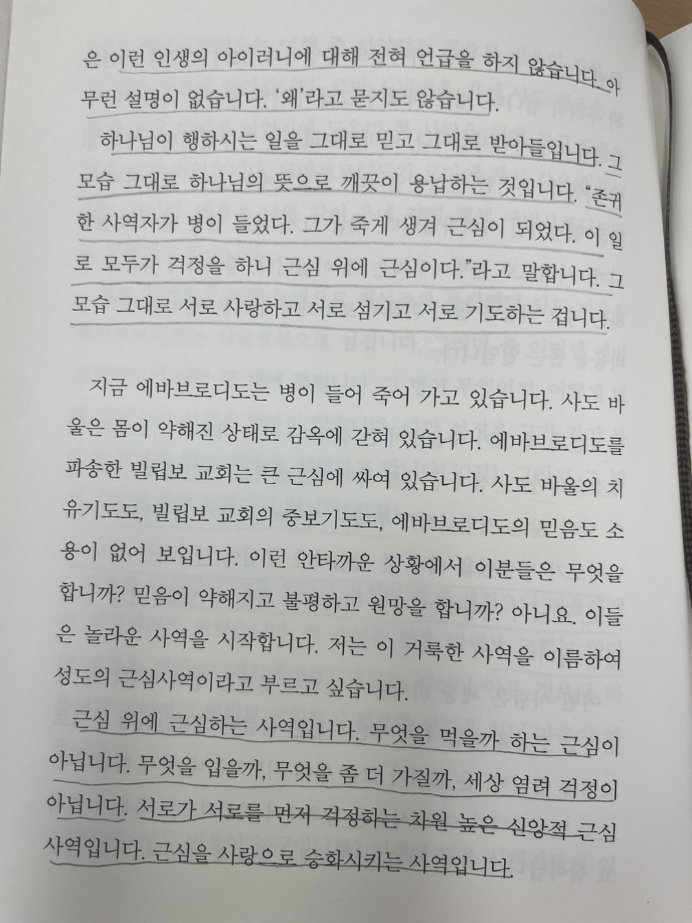 친구의 죽음을 계기로 다시 교회를 다니기 시작했다. 매일 하나님께 물었다. "죽은 자를 위해 기도하는 것이 무가치한가요? 친구를 살릴 수 있었을까요?" 그러나 결국 깨달은 것은 단 하나, 인간이 인간으로 태어나 죽기까지 자신의 삶을 삶 되게 하는 것은 사랑이요, 죽기까지 해야 할 일은 '사랑'이라는 것이다.