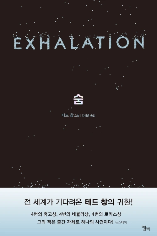 8. 이번 작품집에서 새롭게 발견한 마지막 갈래는 절망에 빠졌을지라도 끊임없이 진보하려는 존재의 아름다움을 담은 이야기다. 표제작인 '숨'은 이 주제를 아주 잘 말한다. 작가는 멸망이 예견되어 있는 삶에서, 존재 자체가 멸망을 앞당기는 우리는 어떻게 살아야 하는가에 대해 끝없이 질문한다. (그렇다면 사고할 수 있는 능력을 연장하기 위해 침묵한 채 남아 있는 편을 택해야 할까? 아니면 종말이 닥칠 때까지 계속 말을 해야 할까? _83쪽)