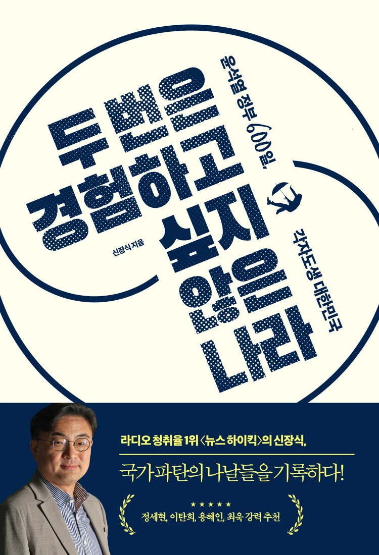 1. 신장식 변호사는 TBS와 MBC에서 라디오 DJ로 활약했고, 현재는 조국혁신당에 입당해 비례대표로 이름을 올렸다. 그가 라디오 진행하며 매일 내보냈던 '신장식의 오늘'이라는 이슈 단평을 주제별로 모아 엮은 책이 <두 번은 경험하고 싶지 않은 나라>이다.