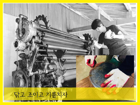 교장 선생님의 고난 로드는 크고 무거운 기계들을 옮기는 이사 과정부터였다. 지금 책공방의 있는 물건들을 실은 트럭이 수차례 다녀간 후 그것들을 정리하고 배치하는 과정은 온전히 교장 선생님의 몫이었다. 그렇게 6개월 가까이 오픈 준비를 하며 살이 쭉 빠져서 얼굴이 반쪽이 되었다고 했다. 하지만 이것이 끝이 아니었단다. 삼례문화예술촌 개관과 함께 책공방도 문을 열었으나 책공방에 있는 기계나 물건들을 고물 취급하며 함부로 이야기하는 사람들을 수도 없이 마주하다 보니 그동안 보물이라 여겼던 기계와 도구들이 어느 순간 짐처럼 여겨졌다고 했다. 교장 선생님의 이러한 이야기를 접하기 전에도 막연하게 공방에 있는 것들을 보며 ‘이걸 다 관리하시려면 정말 힘이 들겠다’고 생각했었는데 직접 이야기를 듣고 보니 그 힘듦이 고스란히 와 닿았다. 그리고 그와 함께 교장 선생님이 그렇게 어렵고 힘든 시간을 견뎌 준 덕분에 나를 비롯한 책학교 학생들과 책공방에 오는 많은 사람들이 이 모든 것을 누리고 있구나 하는 생각을 하게 되었다.