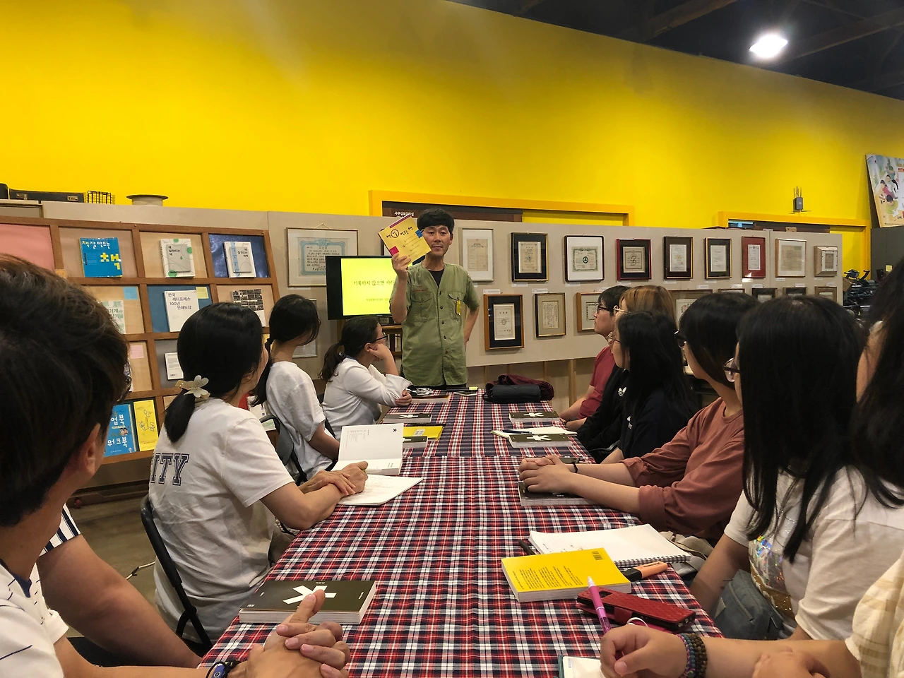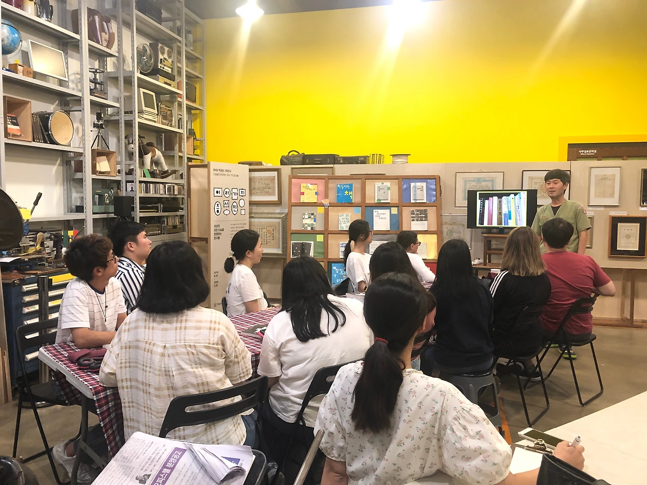 그밖에도 지역 어르신들의 기록을 모으고, 젊은이들에게 기록을 장려하고, 직접 손으로 책 만드는 법을 알려주고, 이제는 사라져서 쉽게 볼 수 없는 오래된 기록을 전시하고, '1년 1책 자유 출판‘을 진행한다 등등. 교장 선생님의 친절한 책공방 소개 시간이 이어졌다. 그리고 이와 함께 이렇게 많은 일들을 하기로 결정하는 일에 비해 실천하는 일은 상대적으로 어렵지 않았다고 했다. 할까 말까 고민만 하는 시간이 길어질수록 결정하고 행동하는 시간보다 더 힘들다는 것은 나 또한 경험해 본 적이 있어 무척 공감이 되는 이야기였다.
