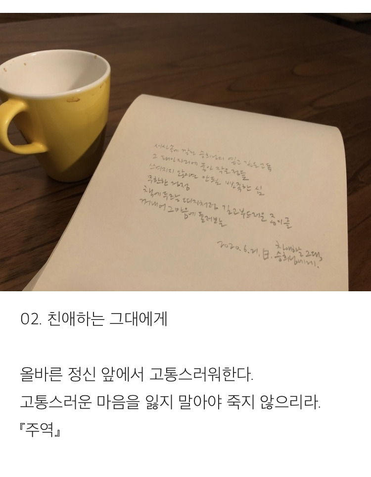 어젯밤 늦게 ‘01. 친애하는 그대에게’의 답신이 도착했습니다. 두근두근 설레는 마음으로 읽다가 마음이 울컥해져 혼이 났습니다.