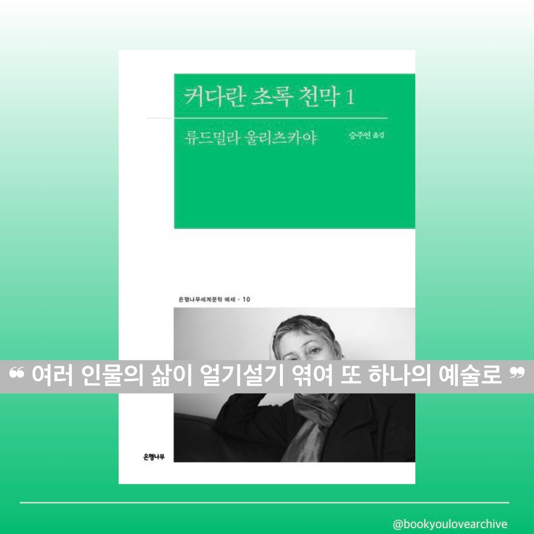 선인과 악인으로 명확하게 구분할 수 없는 복잡다단한 등장인물들이 격동의 시기를 통과하는 러시아와 온몸으로 부딪히며 만나고, 사랑하고, 이별하고, 때론 기쁨을, 때론 슬픔, 아픔, 고통을 느끼며 살아간다. ‘커다란 초록 천막’은 삶을 의미하는 걸까, 죽음을 의미하는 걸까, 아니면 삶과 죽음 사이의 세상을 의미하는 걸까. 읽을수록 결말이 점점 더 궁금해진다.