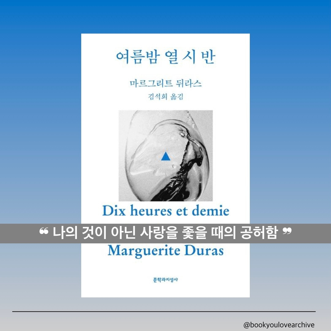 (23/10/04) 여름밤 열 시 반. 여름의 어느 달인 지에 따라 강렬한 태양열이 남아 후덥지근하기도 하고, 생각보다 기온이 높지 않아 서늘한 바람이 불기도 하는 시간. 이 소설은 그런 변덕스러운 여름의 강렬함과 서늘함을 모두 담은 소설이다.