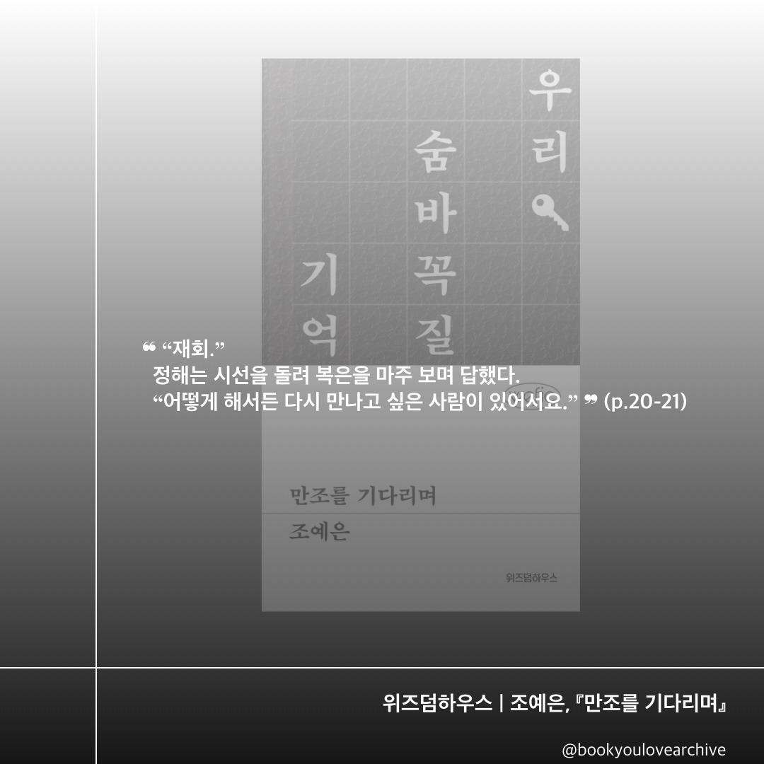 위픽 시리즈 중에서도 이 작품이 인기가 많아 보여서 읽어 보고 싶었는데 마침 도서관에 들어왔길래 앉은자리에서 한 시간 만에 읽었다. 내가 생각하는 위픽 시리즈의 장점 중 하나는 반나절에 완독이 가능한 부담 없는 분량이라는 것! 이 작품도 중간에 멈출 수 없이 이야기로 빨려 들어가는 기분으로 읽어 내려갔다.