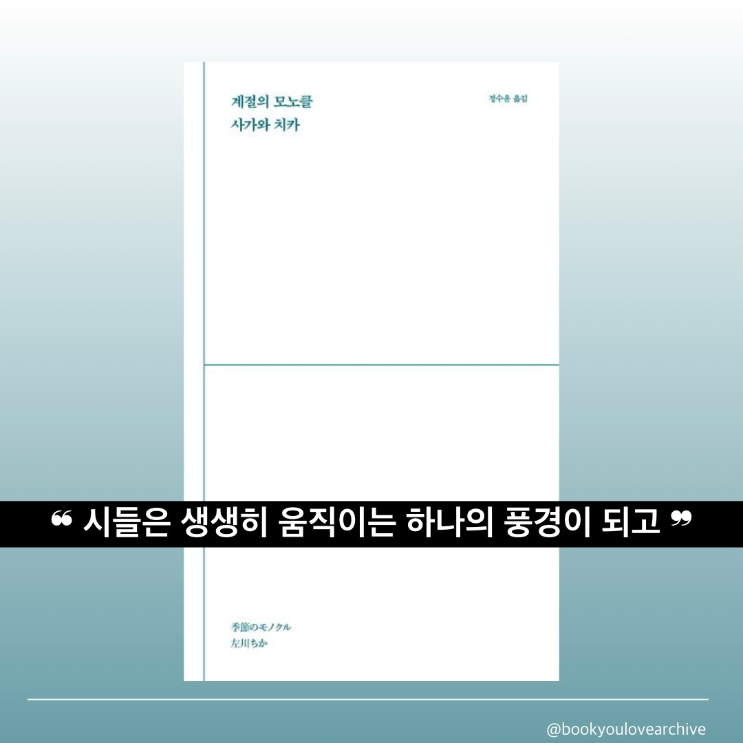 생생히 살아 움직이는 듯한 하나의 풍경이 되는 시들을 읽으며 삶과 죽음, 계절과 순환에 관해 사유해 볼 수 있었다. 원문이 함께 실려 있으나 일본어를 알지 못해 원문과 함께 번역을 음미할 수 없어서 아쉽다. 이 아름다운 시집, 그리고 아름다운 시인이 더 많은 사람들에게 알려지기를 바란다.