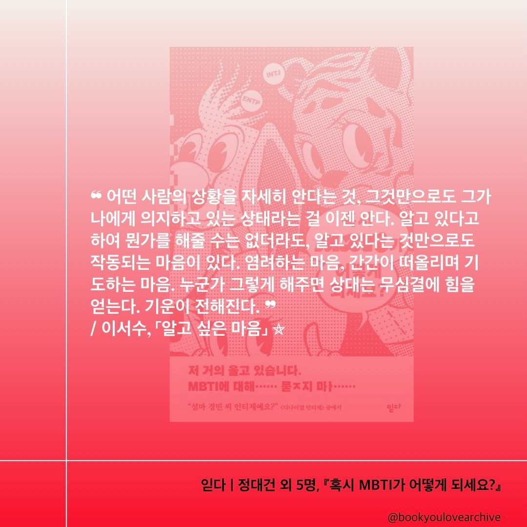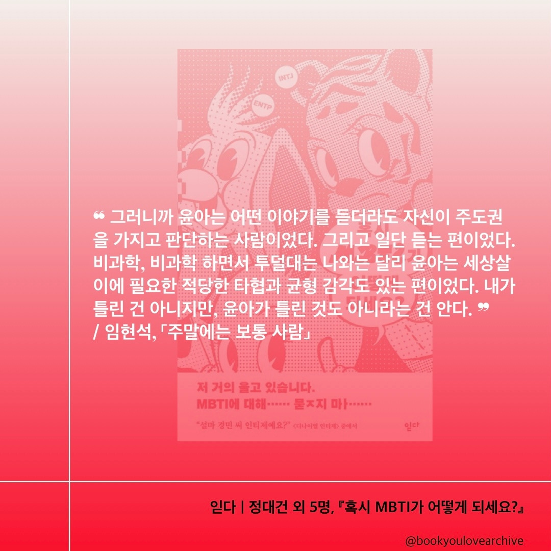 그래도 나는 MBTI가 좋아, 누군가를 알고 싶은 마음이라니 기특하고 귀엽잖아.