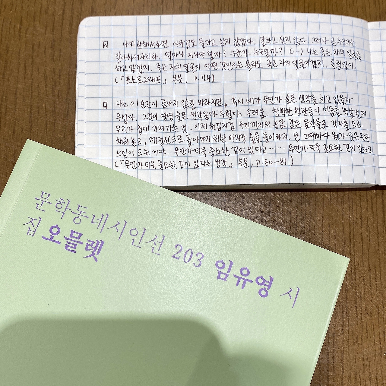 (23/12/13) 우필사 이벤트로 받은 문학동네시인선 203 임유영 시인의 첫 시집 『오믈렛』을 읽었다.