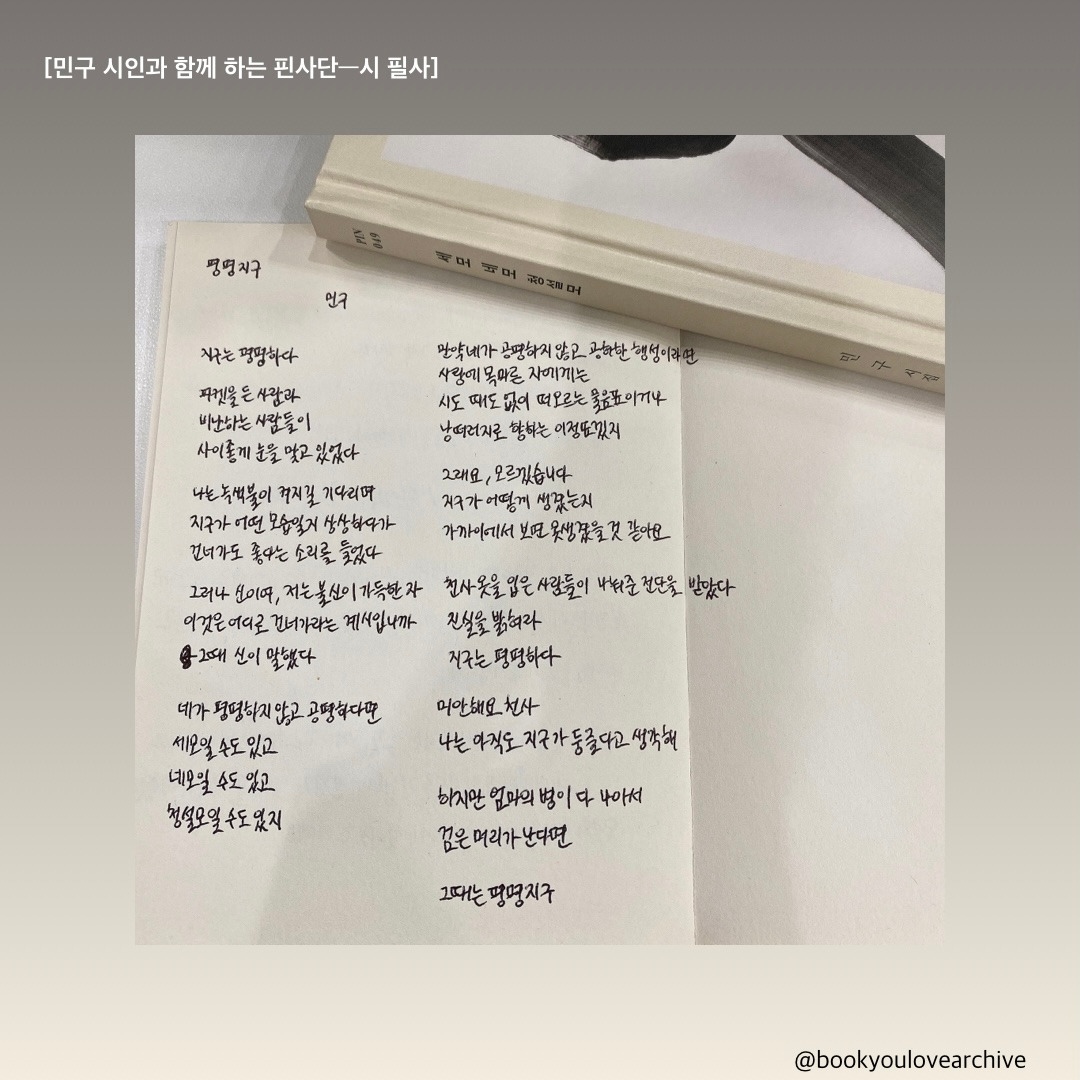 (23/12/15) 민구 시인과 함께 하는 핀사단 필사 두 번째 시는 「평평지구」다.
